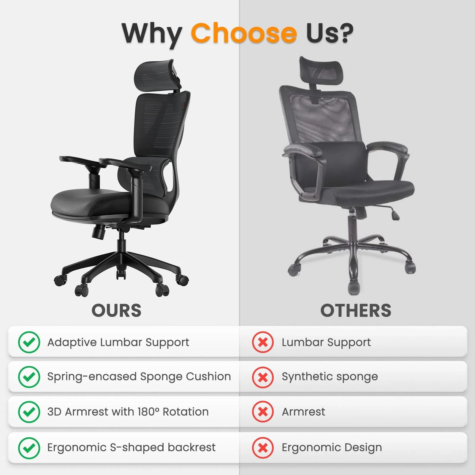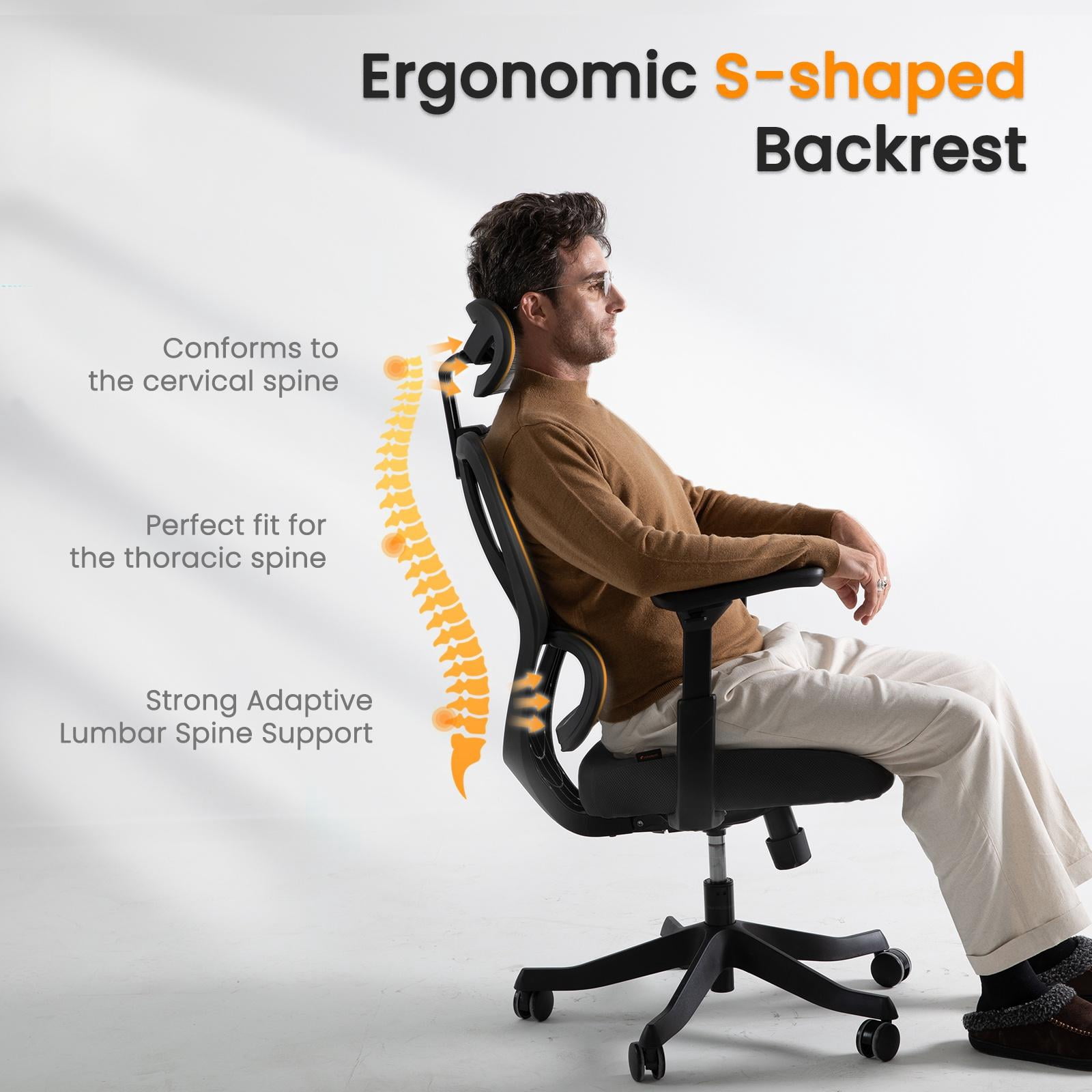 【Ergonomic Office Chair】Our S-shaped ergonomic chair combines advanced design with adaptive back support to provide maximum comfort. 【Generous Size】If your weight ranges from 90 to 280 pounds, this big and tall office chair offers a remarkably spacious seating area, providing you with ample room to move and exceptional comfort. 【Adaptive Lumbar Support and Spring Seat Cushion】The adaptive lumbar support automatically adjusts its position based on your body movements, providing continuous support. 【Adjustable 3D Armrests and Headrest】This home office desk chairs is equipped with 3D armrests that are adjustable in height, forward/backward, and can rotate 180 degrees, catering to your unique sitting posture and providing optimal arm support. 【After-sales warranty】When it comes to our health office products, such as ergonomic chairs and electric standing desks, we provide a 2-year warranty to guarantee your peace of mind and satisfaction.