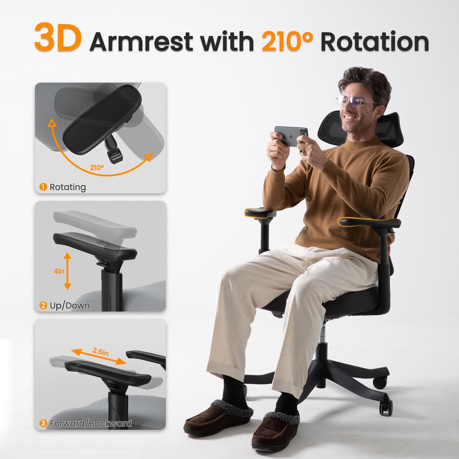 Ergonomic Office Chair, Seenda High Back Gaming Chair with Adjustable 3D Arms Headrest and Lumbar Support, Black