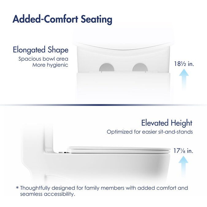 - Compliant with ADA standard, the 17+ in seat height facilitates ease of use and builds extra accessibility