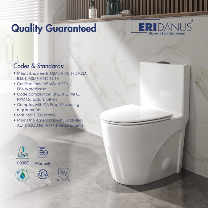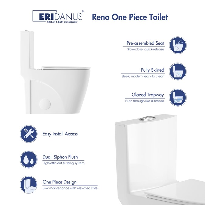 Meticulously crafted to enhance your daily experience, Eridanus Elongated One Piece Toilet is the perfect blend of style, efficiency, and eco-friendliness. The powerful and quiet dual flush system ensures optimal water conservation without compromising on performance, making it an eco-friendly choice for your home. The modern and sleek design of Eridanus toilets brings a touch of sophistication to any bathroom decor and the toilet being one-piece eliminates awkward gaps or crevices that trap dirt and stain, rendering cleaning and maintaining effortless while elevating the overall aesthetic of the bathroom.
