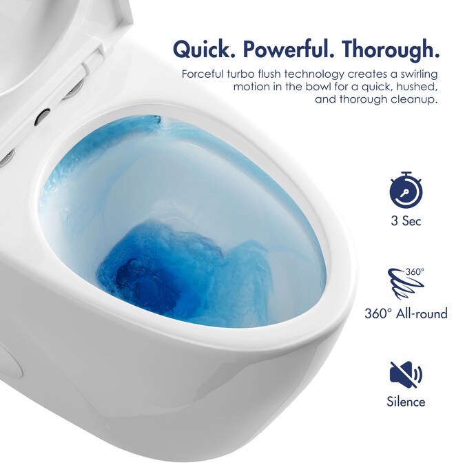- One-piece design not only enhances the toilet’s aesthetics but also makes cleaning a breeze