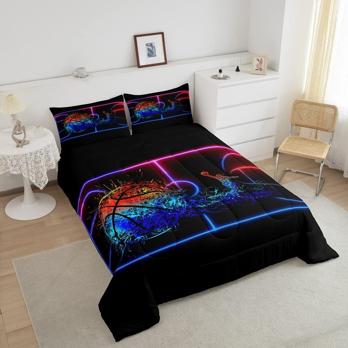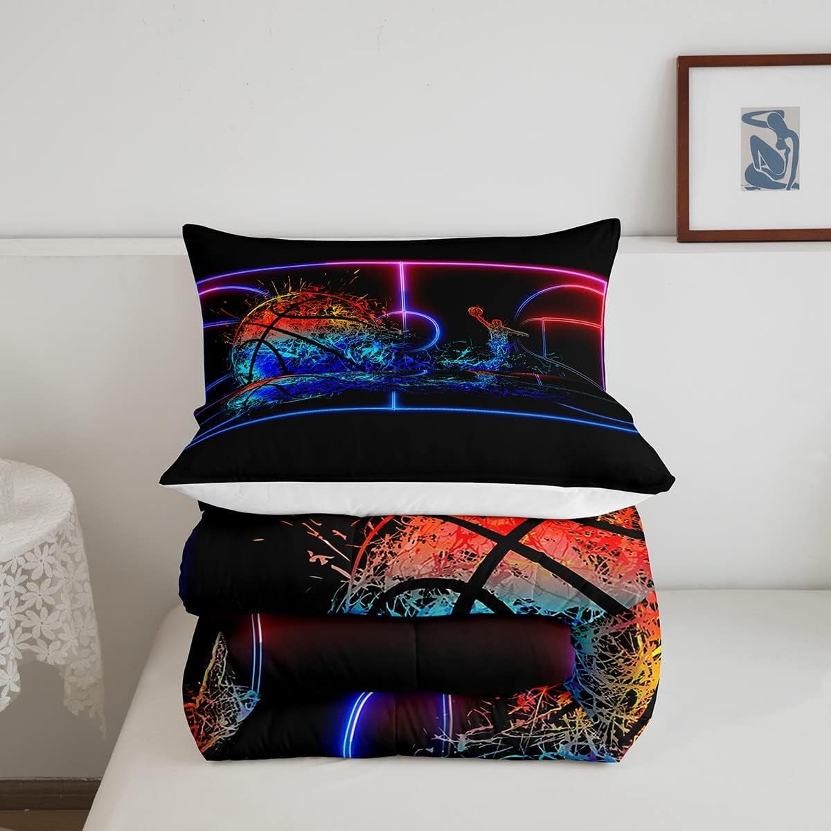 Erosebridal Basketball Comforter Set Twin 3D Sports Bedding Sets Teens Men Tie Dye Fire and Ice Comforter Player Sport Game Warm Soft Lightweight Red Blue Quilt Set, Black