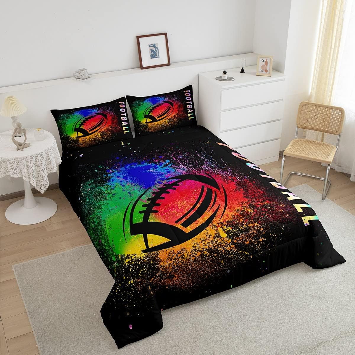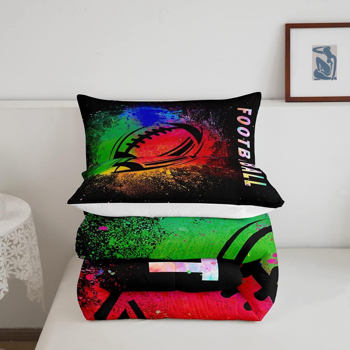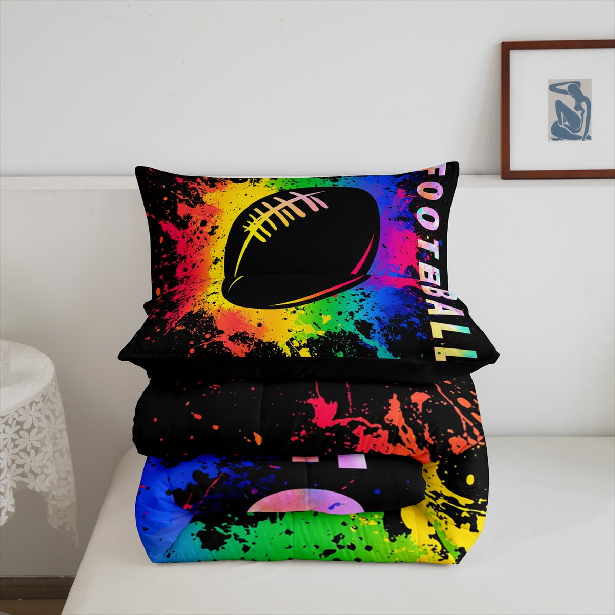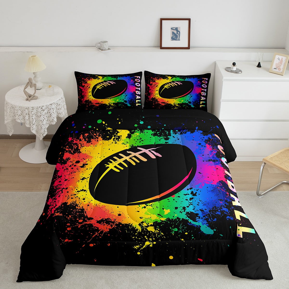 Welcome to our store! We have specialized in home textile for many years. We are contribute to provide the best customer service and products. If you have any questions, please contact us anytime. We’ll try our best to answer your questions and solve your problems. Size Imformation Twin size: 1 Down Comforter (68″W x 90″L) & 1 Quilted Pillowcase (30″W x 20″L). Full size: 1 Down Comforter (79″W x 90″L) & 2 Quilted Pillowcases (30″W x 20″L). Queen size: 1 Down Comforter (90″W x 90″L) & 2 Quilted Pillowcases (30″W x 20″L). King size: 1 Down Comforter (104″W x 90″L) & 2 Quilted Pillowcases (36″W x 20″L). Versatility We have many kinds of styles for you to choose. You can easily find a product that suits the style of your room perfectly. The item is not only perfect for your home (bedroom, guest room, living room, etc) or RV, but also a great gift for holidays or anniversaries (Chiristmas, New Year, Halloween, Thanksgiving day, birthday, etc) for people who you love (your families, friends, relatives, boyfriend/girlfriend…). Modern Design The luxury aesthetic comforter set is made by environmental friendly reactive printing and dyeing process. The pattern is clear, the color is lasting and bright, which will not fade after repeated washing. NO HARMFUL chemicals or dye substance. Personalized As a manufacturer of digital printed home textiles, we follow current trends and bring you the latest and stylish home textile products. The item will make the room decorated in exquisite taste. Our Guarantee We sincerely hope you’ll love the bed set. But if you consider that it is not fit for your home for any reasons, please send an email to us.