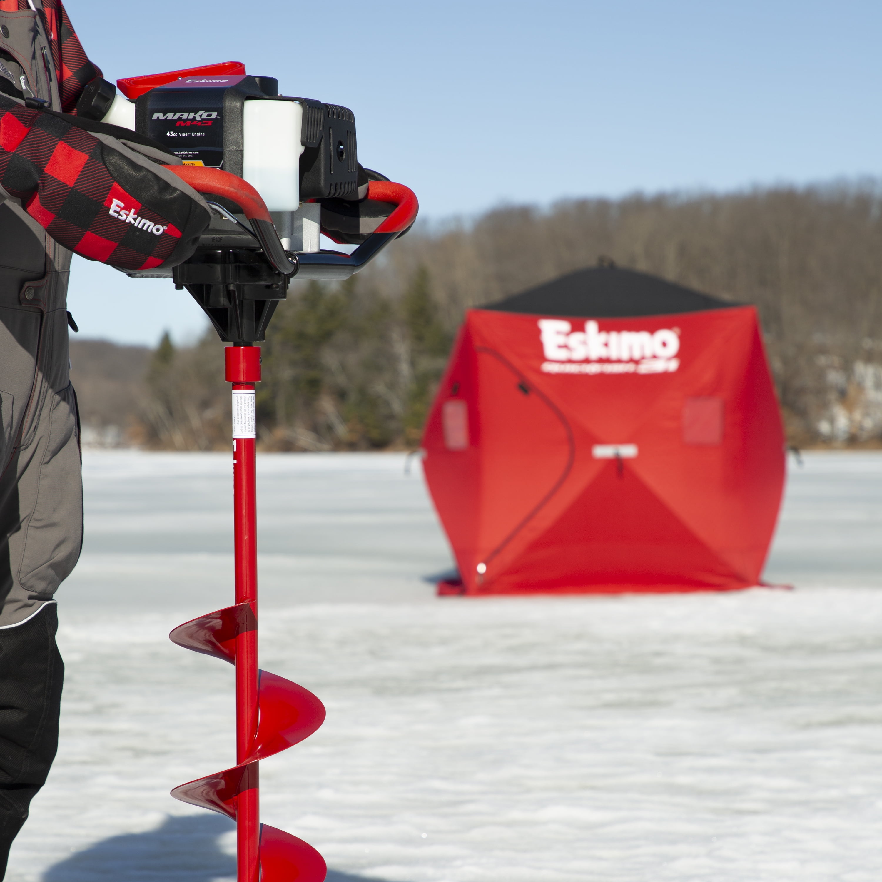 60-SECOND SET UP Hub design makes set-up and take-down quick and easy. FULLY-INSULATED IQ Insulated Fabric is 35% warmer than a comparable non-insulated shelter. PORTABILITY Everything fits into a cinch carrying bag that can easily be carried on your back. SELF-TAPPING ICE ANCHORS Easier to grip, and won’t bend under pressure. IN-SKIRT ICE ANCHOR GROMMETS Easily place your ice anchors through grommets located directly in the skirt material—eliminating the hassle of finding and holding a separate grommet tab. MESH STORAGE POCKETS Keep your essential fishing gear handy & out of the bottom of the sled. REMOVABLE WINDOW PANELS Adjust your shelter’s ventilation with detachable hook and loop window panels. REINFORCED CORNER JOINTS Heavy-duty material is sewn over corner joints for reinforcement. EXTRA-LONG SKIRT MATERIAL Helps eliminate drafts and keep the elements out. YKK ZIPPERS Quality, durable, industry-preferred zippers—standard on all Eskimo ice shelters.