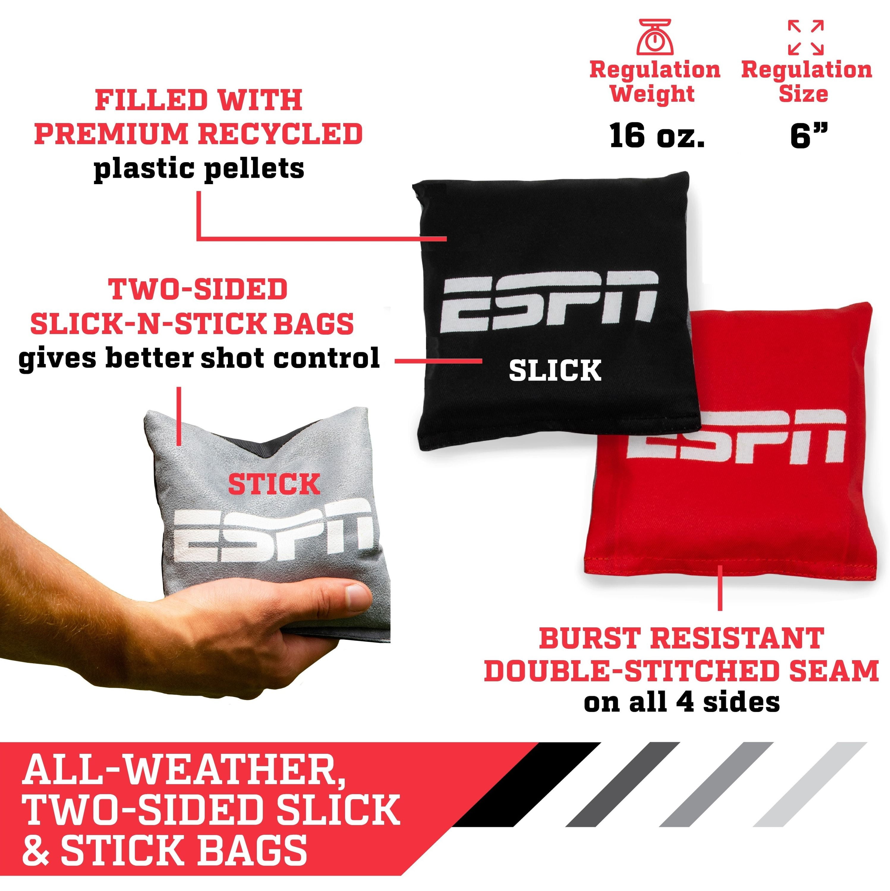 ESPN Official Tournament Size Cornhole/Bean Bag Toss Game, All Weather Bean Bags