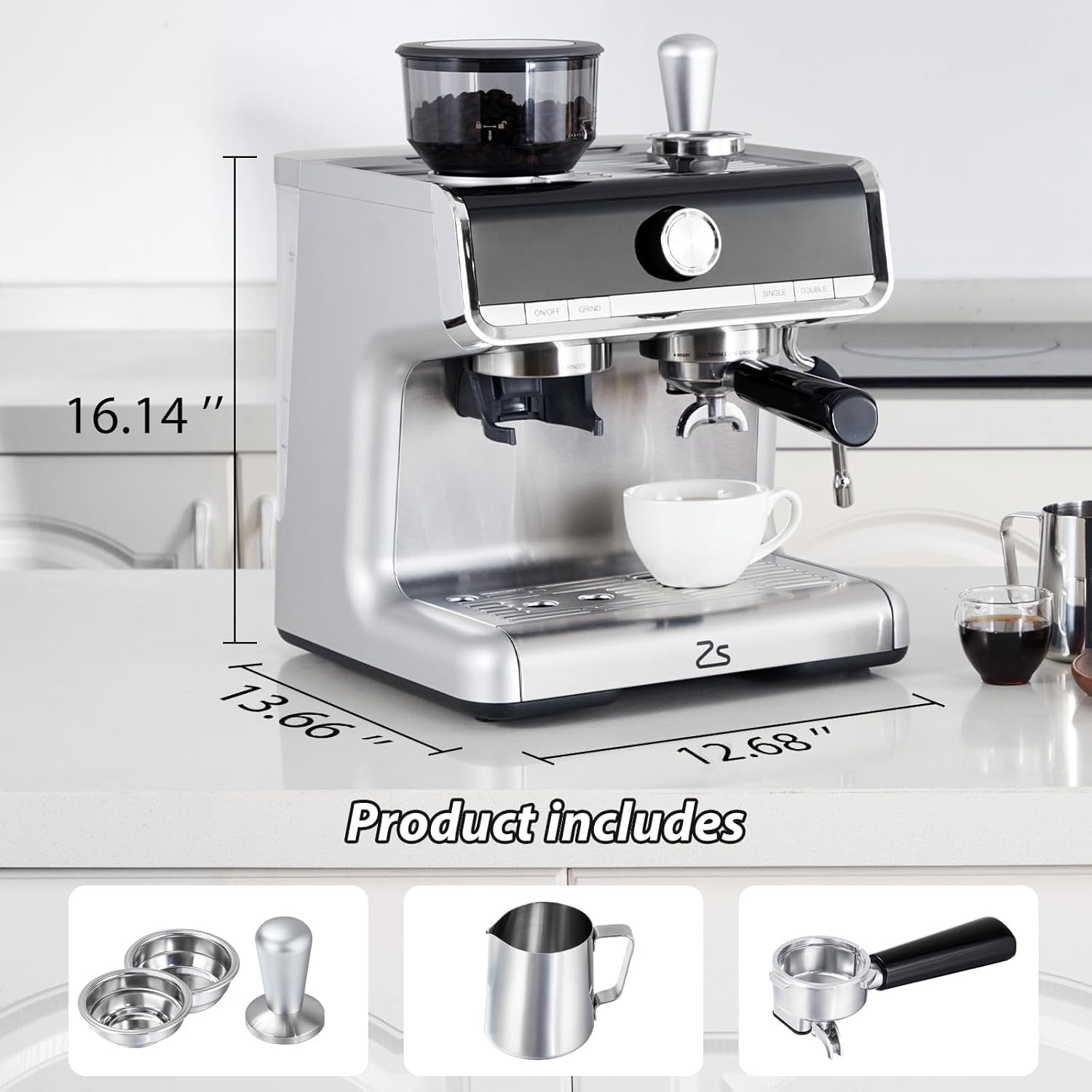 Espresso Machine With Built In Grinder And Milk Frother Twenty Bar Italian Pump Double PID Temperature Control Thirty Grind Settings And Large Two Point Eight Liter Capacity Silver