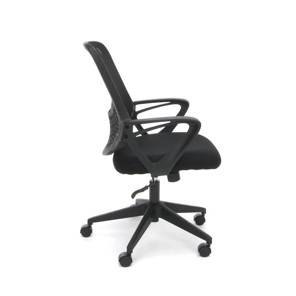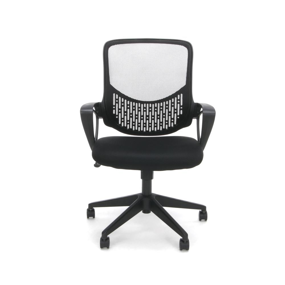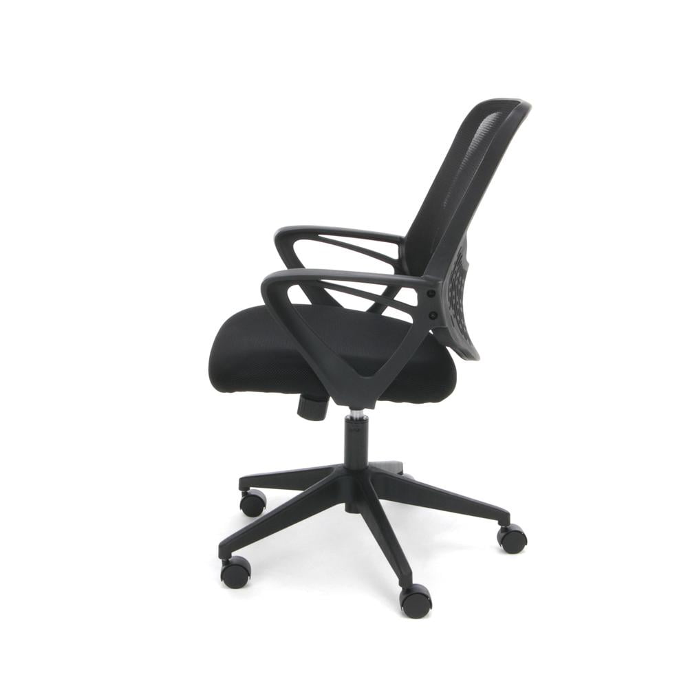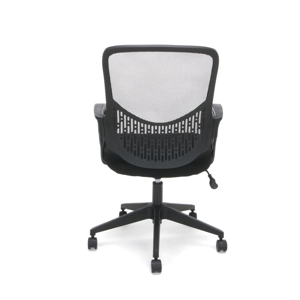 Essentials by OFM ESS-100 Mesh Back Task Chair, Black The Essentials by OFM seating collection is where quality meets value. The ESS-100 task chair features a breathable mesh back and durable sandwich mesh on the seat, plus built-in lumbar support. It also offers simple and intuitive controls such as gas lift seat height adjustment and 360 degree swivel for added customizability and comfort. The padded arms provide additional support for your upper body. The comfort, stylish look, and price point of this chair make it a perfect addition to the office, whether at work or at home. This model meets or exceeds industry standards for safety and durability, and is backed by our Essentials by OFM Limited Lifetime warranty. Smart design: cooling, breathable mesh back and stain-resistant fabric seat Added ergonomic comfort: built-in lumbar support Fixed looped arms: all-day support and comfort for upper body and shoulders Height adjustable: gas lift seat adjustment adapts chair to multiple body heights 250 pound weight capacity – Overall Width: 23.25″ – Back Width: 18″ W x 18.50″ H – Back Material: Plywood/Plastic/Fabric – Overall Depth: 24.5″ – Color: Black – Overall Height: 37″ – Net Weight: 34 – Arm Adjustment Maximum Width: 18.9″ – Back Height Maximum from Floor: 37″ – Organic Search Keywords: 24,adjustable,office,furniture,back,boardroom,business,ergonomic,desk,corporate,computer,comfortable,commercial,conference,seat,seating,fabric – Arm Adjustment Maximum Height: 23.23″