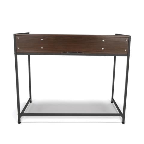 Model ESS-1003 Essentials Computer Desk with Shelf Depth: 23.6″ Width: 43.5″ Height: 35.8″ Color: Gray/Walnut Weight Capacity: 200 lbs Material: Wood, Metal, MDF Assembled Item Dimensions: 23.6″ D x 43.5″ W x 35.8″ H