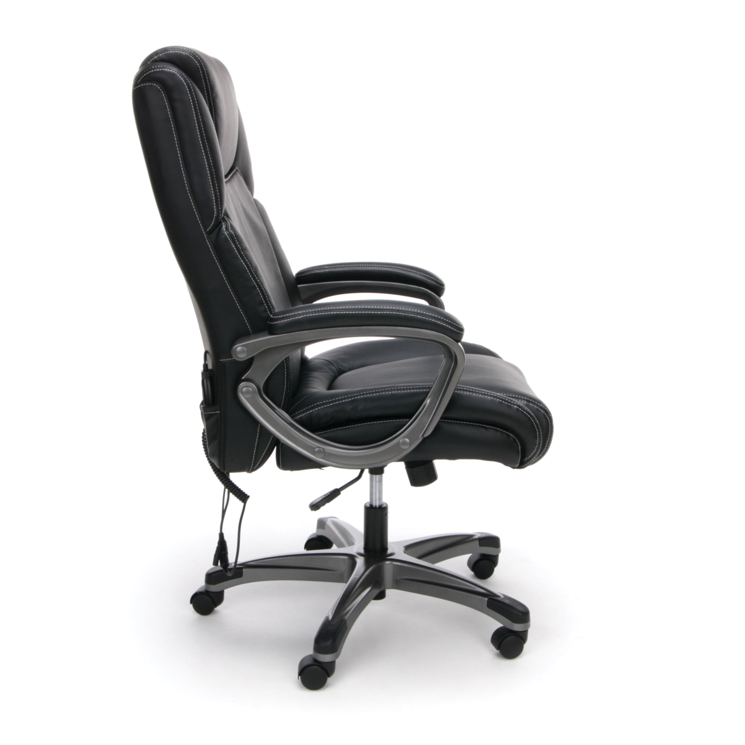 The Essentials by OFM seating collection is where quality meets value. The ESS6035M upgrades the executive office chair experience with the addition of a heated, Shiatsustyle rolling/kneading adjustable fullback massage system that provides the ultimate in comfort and helps soothe muscle tension and aches. The system is controlled by a remote that attaches unobtrusively to the side of the chair when not in use. The high back, seat, and integrated headrest are designed with segmented doubleplush padding for luxurious support, and are upholstered in smooth SofThread leather for an upscale look and feel. The thickly padded loop arms add style and upper body support. The ESS6035M also offers simple and intuitive controls such as gaslift seat height adjustment, 360 degree swivel, tilt tension, and tilt lock for even more ergonomic customizability. The comfort, stylish look, and price point of this chair make it a perfect addition to the office, whether at work or at home. This chair meets or exceeds industry standards for safety and durability, and is backed by our Essentials by OFM 3 year limited warranty.PROP 65 WARNING: This product can expose you to some kind of chemicals, which is known to the State of California to cause cancer For more information, go to P65Warnings.ca.gov SKU:ADIB01LYE4AJT