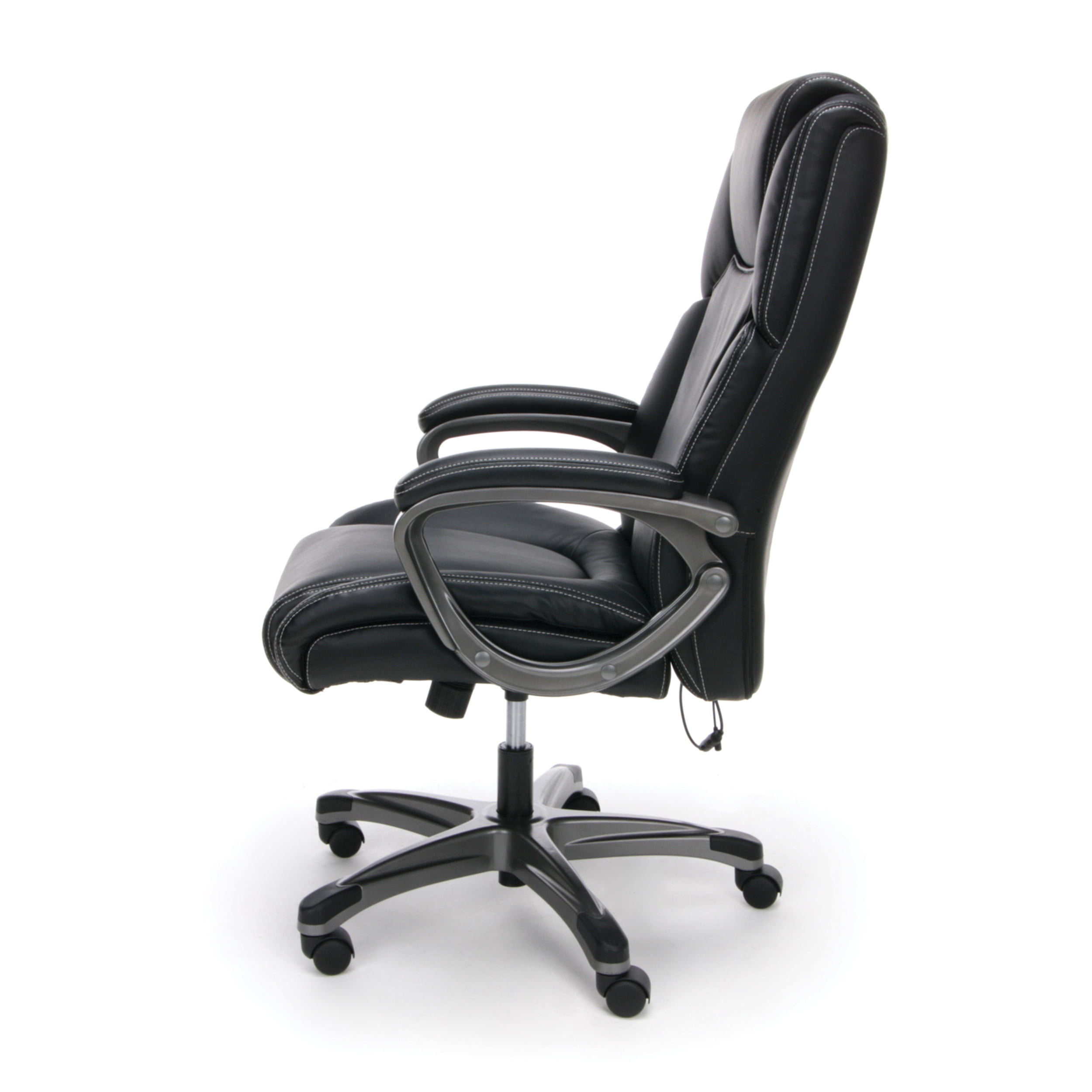 Heated, Shiatsu-style adjustable massage system gently kneads and rolls for ultimate comfort throughout seat back Unparalleled support in an upscale look: plush, segmented padding in back, seat, and arms plus integrated headrest SofThread Leather: smooth, pliable seating surface provides an upscale feel at a compelling price Center-tilt and tilt-tension control: adjust chair and seat back recline for comfort and work preferences 250 pound weight capacity This model features a 110v plug with a 6′ cord.