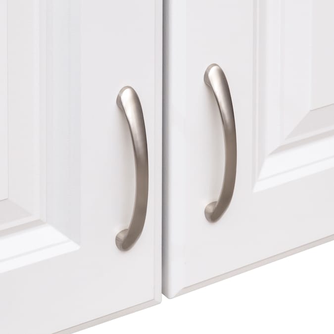 - Estate collection wall storage cabinet in a durable, scratch resistant white thermofoil finish provides versatile storage