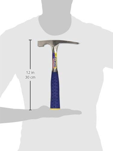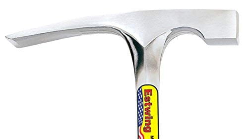 The Estwing 20 oz. Bricklayer’s hammer has a bonded and molded shock reduction grip that reduces shock up to 70 percent and will not come off. Patented nylon end cap now makes this hammer the most durable on the market. Estwing hammers are the only hammers that can make this claim. The head and handle are forged in 1-piece and are fully polished. This tool has unsurpassed balance and temper. Always wear safety goggles. Bystanders shall also wear safety goggles. This tool can pull a variety of fasteners and is extremely strong and durable.