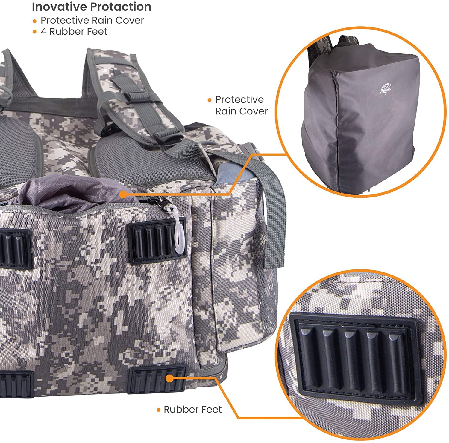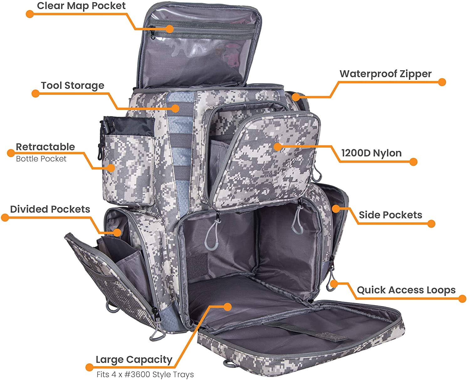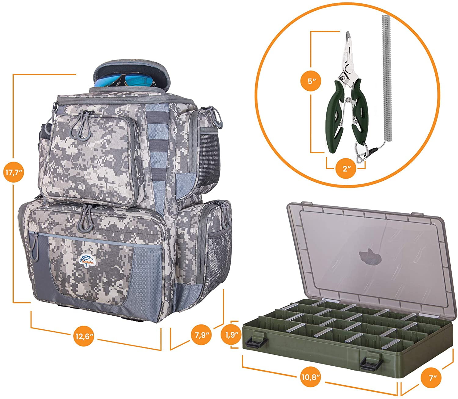 etacklepro Fishing Backpack Waterproof Tackle Bag with Protective Rain Cover Includes 4 Tackle Boxes Stainless Steel Fishing Pliers and Lanyard – Digital Camo