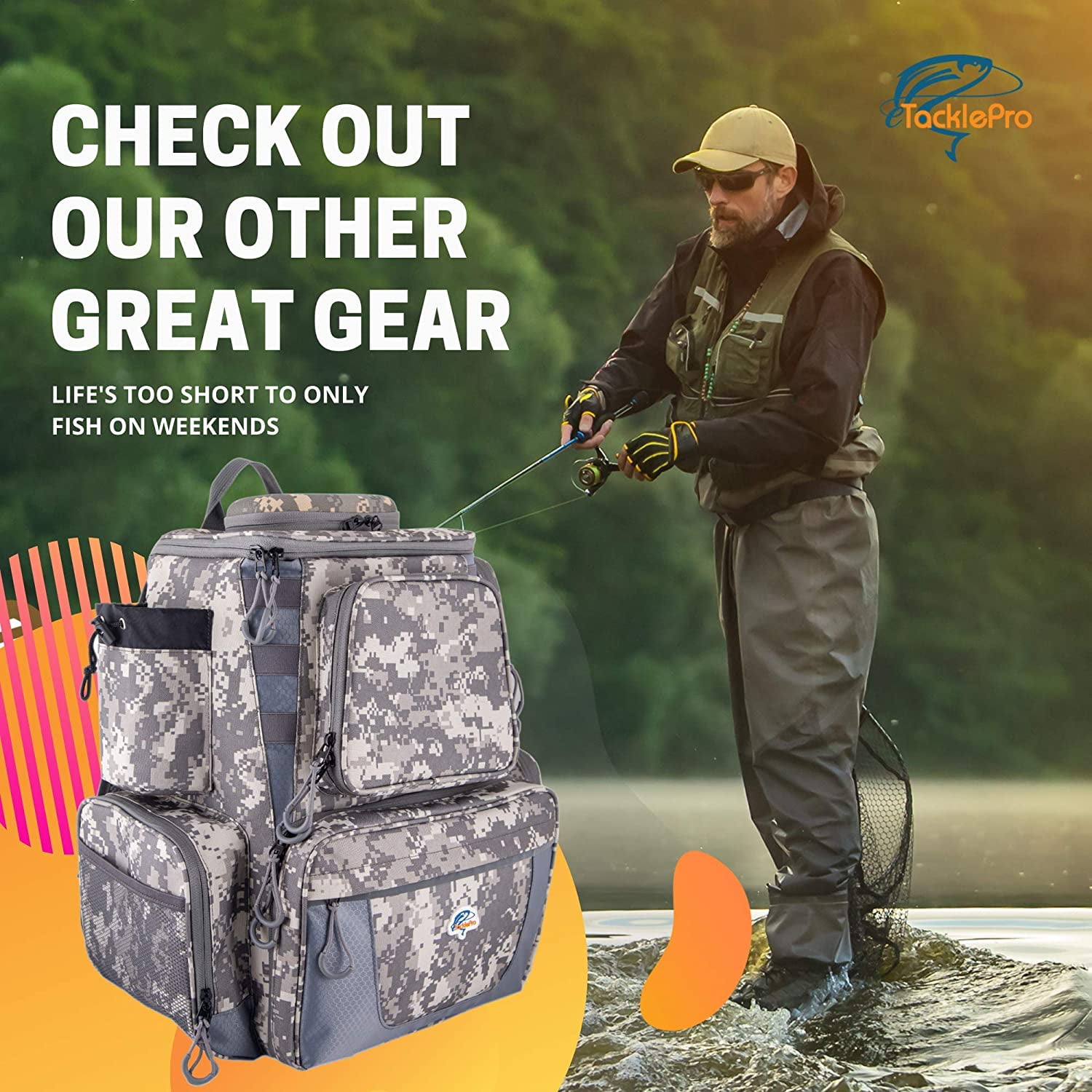 Everything You Need in One Bundle – This all-inclusive backpack set is the perfect companion for your next fishing trip. While many other brands sell these pieces individually, at eTacklePro, we believe in making fishing prep and storage as easy and affordable as possible! Plus making excellent gifts for the fishermen or anglers in your life! Make their day with this top-of-the-line backpack, complete with protective rain cover, 4 tackle boxes, and stainless steel fishing pliers with lanyard. Heavy Duty Water-Resistant Backpack – Made from 1200D Nylon, our large, multi-compartment bag is the perfect choice to store all of your tools & gear. With a waterproof plastic inner pocket and hard glasses compartment, your valuables will be safe and dry. Made using durable, water-resistant high density nylon fitted with ergonomic straps, our backpacks are comfortable and made to last. Plus, we’ve included a protective rain cover whether you are fishing on the ocean, river, or lake. Self Repairing Water-Resistant Zipper Design – At eTacklePro we not only believe we should provide the best product, but the most innovative as well! Unique to our product, water resistant SBS self-repairing zippers ensure added protecting for your fishing tackle storage gear and equipment. Plus, each zipper is fitted with quick access loops so you don’t lose any time when a catch is on the line. Multipurpose Fishing Pliers – Our top-of-the-line pliers make an excellent fish hook remover or braid cutter with a split-ring tip jaw. The high quality stainless steel is resistant and designed to last for years to come! Plus, with an ergonomic ABS hand grip, they are comfortable and effective! Designed with a spring loaded mechanism and safety latch as extra safety precautions, we’ve also included a lanyard that you can attach to the backpack or a belt for easy access. 4 Bait and Tackle Trays Included – The roomy main pocket of our bag is perfectly sized to fit the 4 tackle boxes included in this kit. Every organizer tray comes with 20 individual compartments – that’s a total of 80 compartments to store your favorite lures, bait, and other tackle and lures. No need to pick before you leave, take your choices with you on your next outdoor adventure.