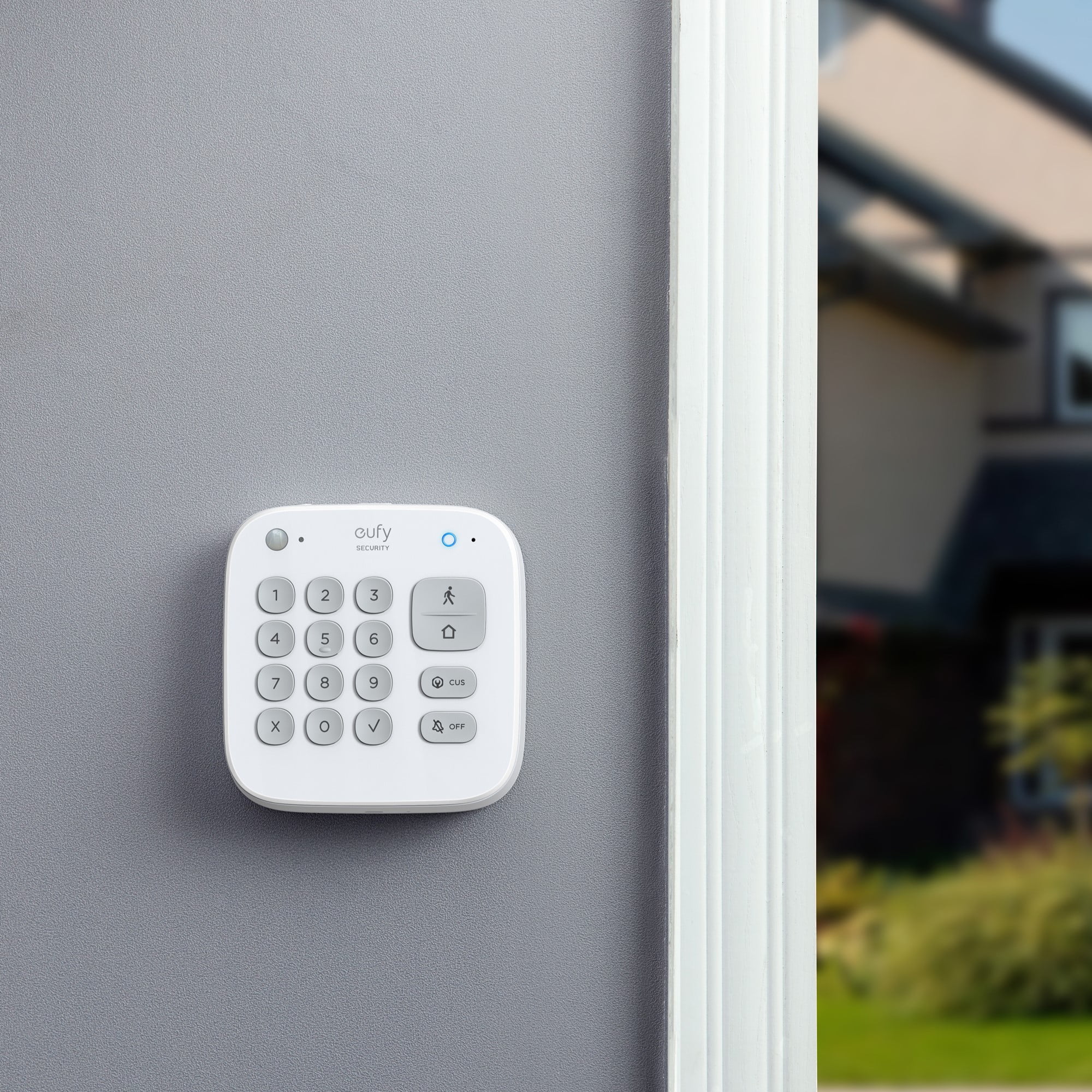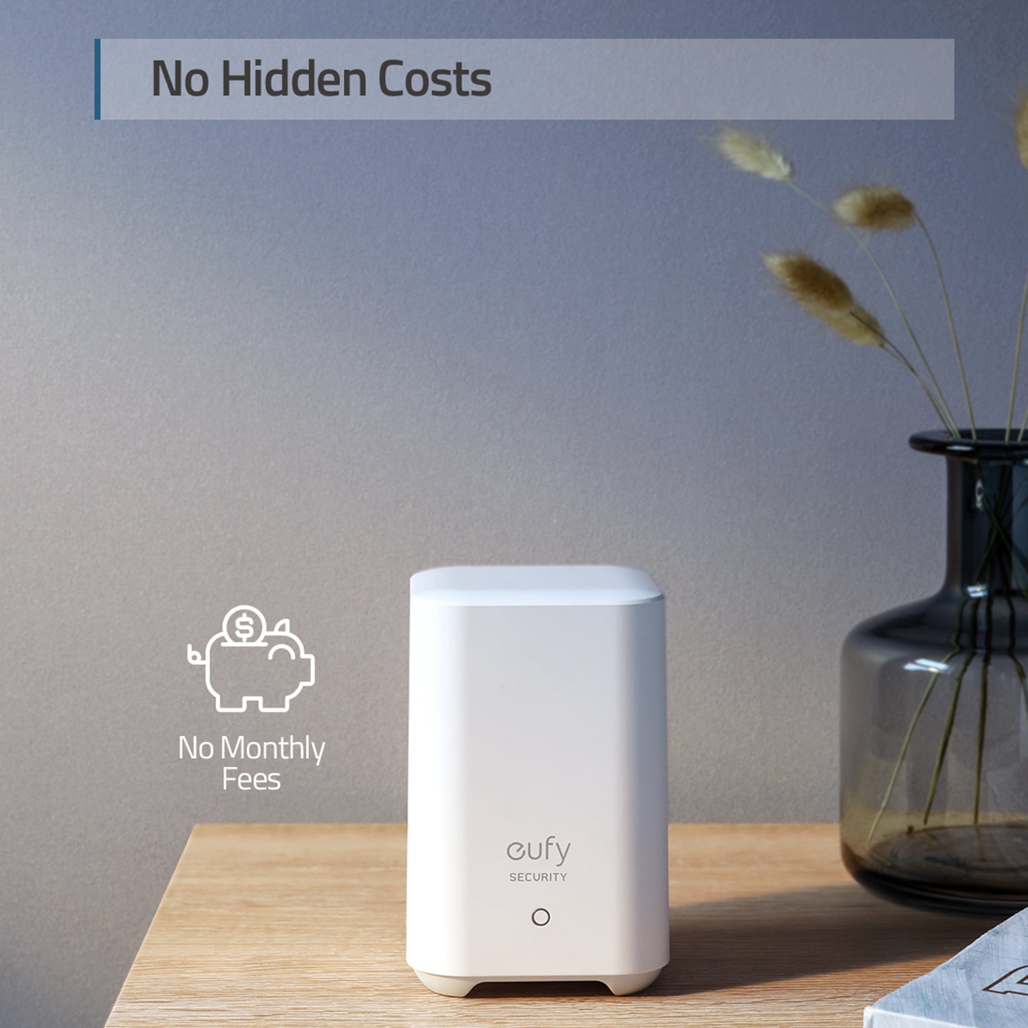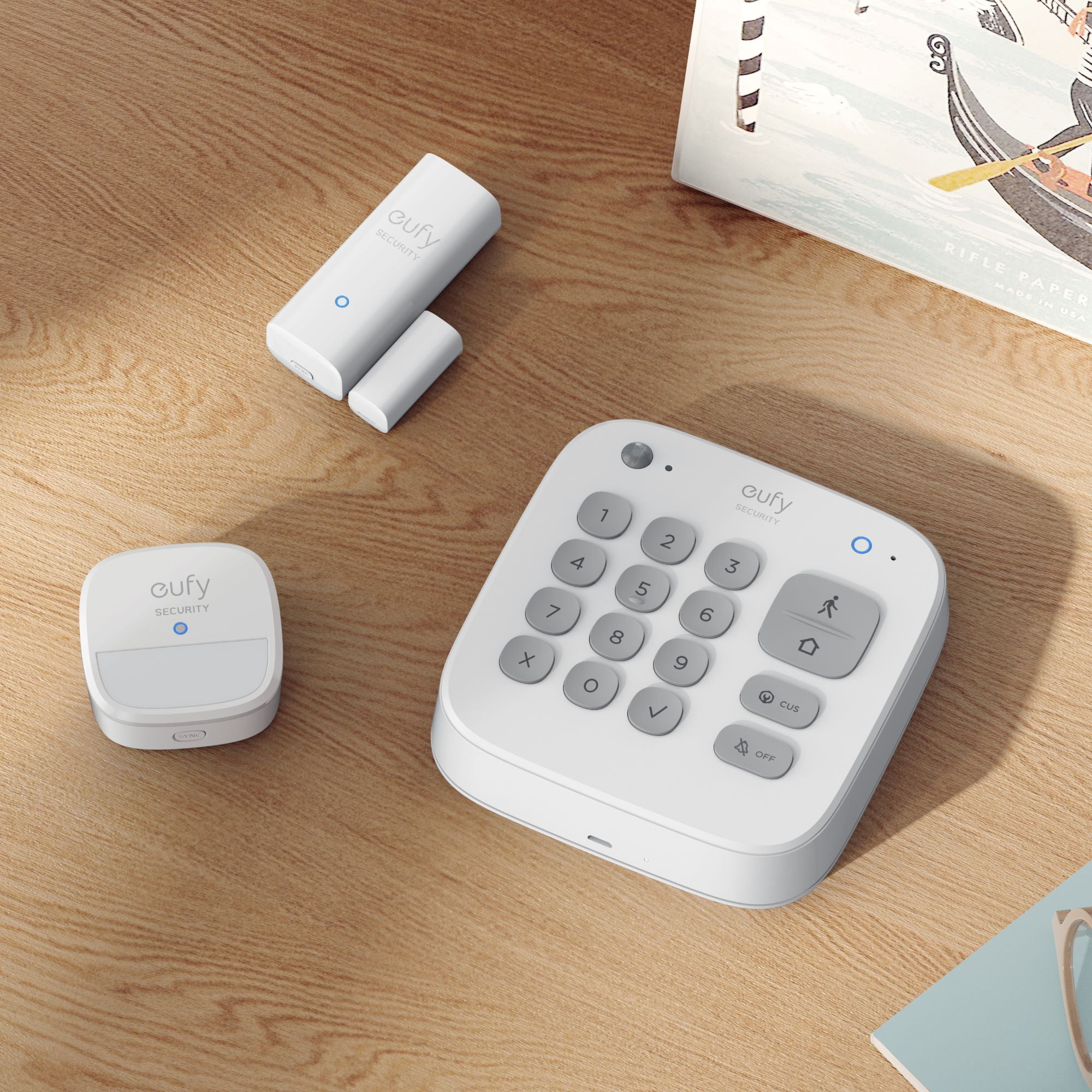 Security in Seconds: Instant Alerts: Easy Setup: Customizable Modes: No Monthly Fees: 24/7 Protection Service: Centralize Your eufy Security Devices: Protect Your Privacy with Encryption: Expand Your Wi-Fi Coverage: Protection that lasts: On The Go: Battery Power: Extensive Coverage: Adjustable Sensitivity: App Alerts: 2-year Battery Life: For Doors and Windows: 100-decibel Siren: 1x HomeBase | T8990121-4 1 x Keypad 1 x Motion sensor 2 x Entry sensors 1 x Owner’s manual