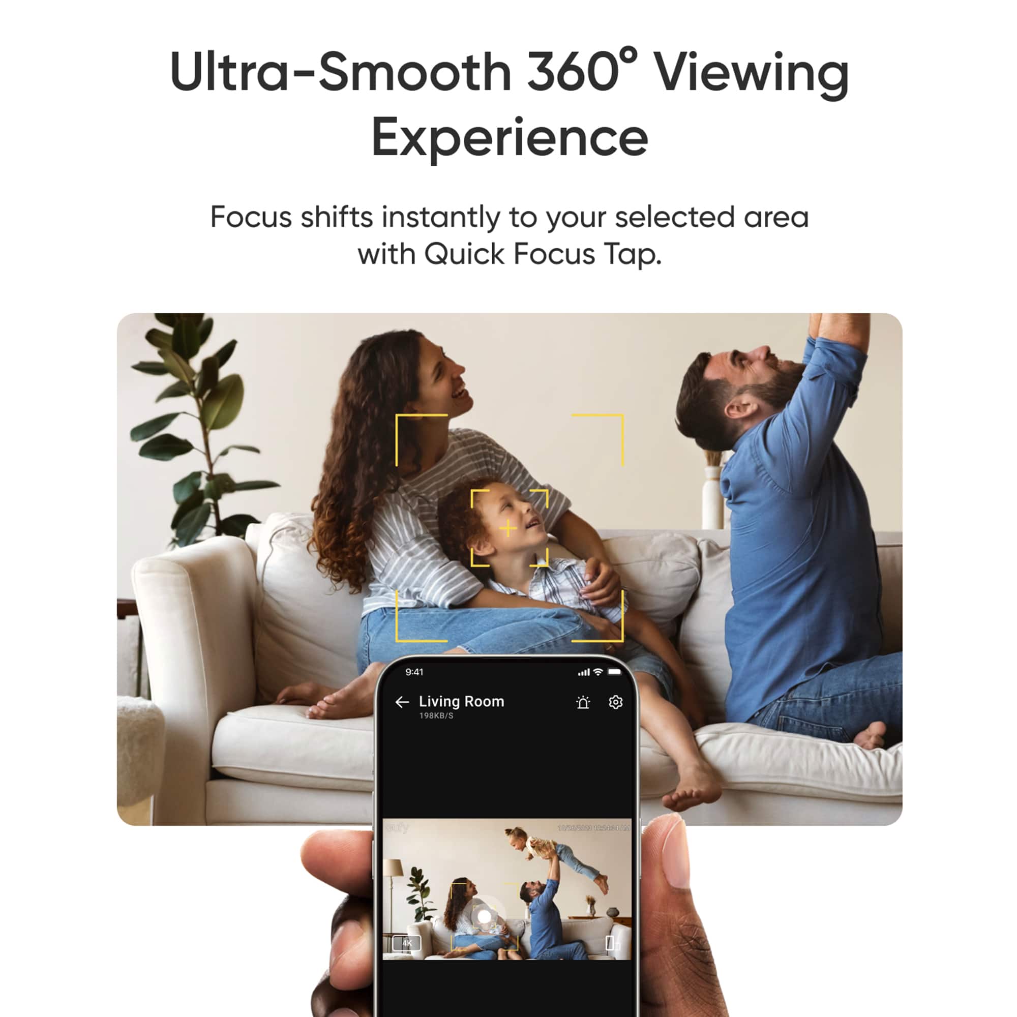 Upgrade to next-gen smart home security with eufy Indoor Cam E30. Ensuring peace of mind, day and night. Featuring the latest innovation in AI technology and stunning 4K UHD clarity, it ensures every image detail is captured with precision for 24/7 ultra-clear recording. AI-powered detection and auto-tracking precisely differentiates between humans, pets, audio, and crying noises then track movements to provide you with detailed monitoring of their whereabouts. The 360° panoramic view allows you to easily navigate the camera around your home’s interior using new eufy app features like Quick Focus Tap and Panoramic View for instant switching of the camera’s focus by simply tapping the desired area on your phone screen. An integrated spotlight ensures crystal-clear nighttime surveillance and can seamlessly switch between color night vision and infrared night vision based on your needs. Stay connected with your family at home through built-in two-way audio for real-time communication. Indoor Cam E30 seamlessly syncs with HomeKit, Alexa, and Google Assistant for enhanced home automation. You can store your footage locally with an SD card (not included) and enjoy all functions without any monthly cloud subscription fees.
