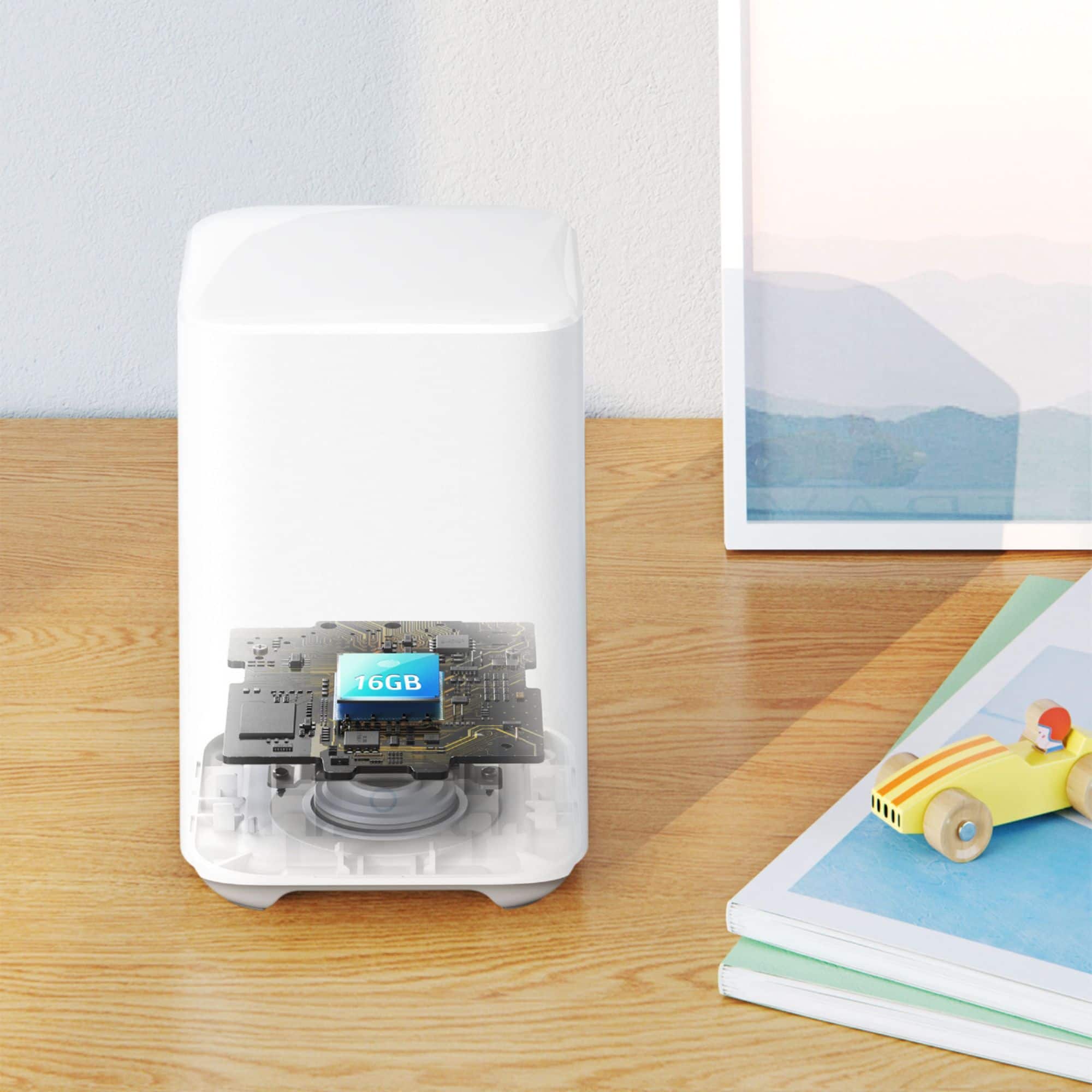 The camera has built-in 16GB local storage for storing about one year of recordings.
