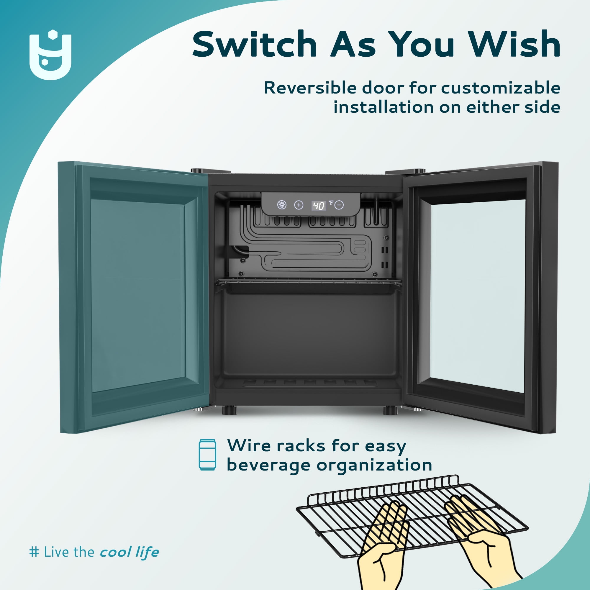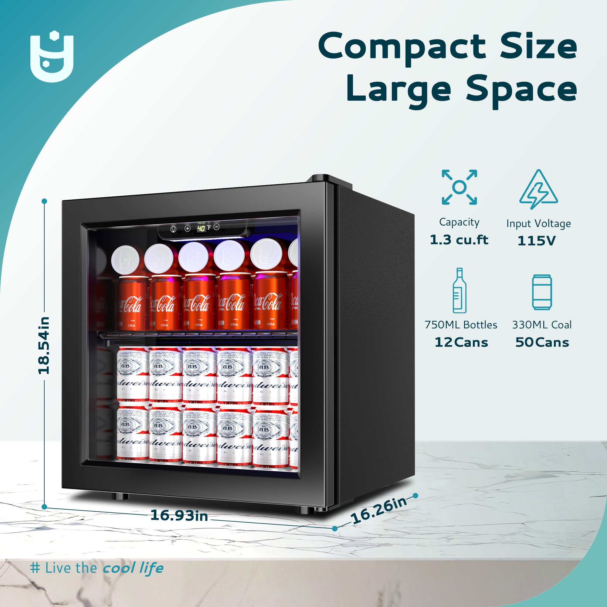 Introducing our fantastic mini beverage refrigerator with a spacious 50 cans capacity, perfect for storing a generous amount of beverages! Get ready to quench your thirst in style. With this mini beverage cooler adjustable temperature range from 40℉ to 61℉, you have the power to personalize your chilling experience like never before. Say goodbye to warm drinks and hello to refreshing coolness! Whether you’re hosting a backyard party, or simply enjoying a relaxing day at home, this mini drink fridge is your ultimate beverage companion. Its ample capacity ensures you’ll never run out of your favorite drinks, keeping you and your friends hydrated and satisfied. -Product Size:17L*16.2W*22.4H IN -Spacious 1.3cu.ft. capacity holds 50 cans of beverages -Adjustable temperature range of 40℉ -61℉ -Removable wire shelves, internal lighting -Reversible door, stainless steel doorframe -Mechanical thermostat can precisely control the temperature -Forced air cooling ensures consistent temperature distribution -Compressor cooling ensures efficient cooling performance in R600a -Applicable to homes, offices, convenience stores, hotels, etc