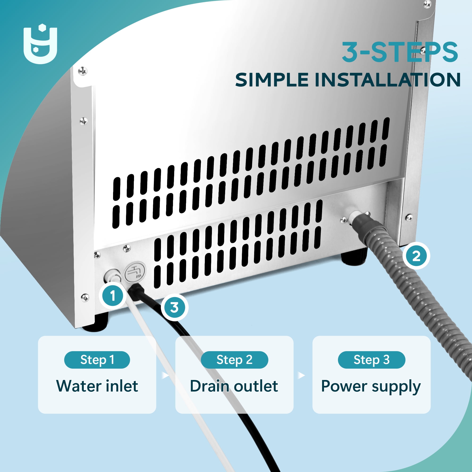Ice maker fast:Produces 45 ice cubes in just 10 minutes, with a daily capacity of up to 100 pounds. Perfect for restaurant/bar/hotel/grocery store, and offices with high ice demands Ice maker fast:Produces 45 ice cubes in just 10 minutes, with a daily capacity of up to 100 pounds. Perfect for restaurant/bar/hotel/grocery store, and offices with high ice demands Customizable Ice Sizes :Adjust the settings to create thicker or thinner ice cubes, ready in 10-20 minutes. Tailor your ice to your specific needs Customizable Ice Sizes :Adjust the settings to create thicker or thinner ice cubes, ready in 10-20 minutes. Tailor your ice to your specific needs Safe and easy to clean:Made of high-quality stainless steel, making it easy to clean.The air outlet design at the bottom ensures more efficient heat dissipation ensuring long-lasting performance Safe and easy to clean:Made of high-quality stainless steel, making it easy to clean.The air outlet design at the bottom ensures more efficient heat dissipation ensuring long-lasting performance Smart LCD Control Panel:The ice maker machine commercial is equipped with a multi-function control panel that displays the ambient temperature and allows you to adjust the ice cube size by changing the ice making time. The 24-hour timer function allows you to set the industrial ice machines to start or stop operation conveniently. Smart LCD Control Panel:The ice maker machine commercial is equipped with a multi-function control panel that displays the ambient temperature and allows you to adjust the ice cube size by changing the ice making time. The 24-hour timer function allows you to set the industrial ice machines to start or stop operation conveniently. Exhaust Heat Cooling System:Our commercial freestanding ice maker is equipped with an exhaust heat cooling system, which helps the large ice maker cool quickly, releasing heat into the air. It can make the entire ice-making process safer and more efficient, providing a reliable ice supply for your business. Exhaust Heat Cooling System:Our commercial freestanding ice maker is equipped with an exhaust heat cooling system, which helps the large ice maker cool quickly, releasing heat into the air. It can make the entire ice-making process safer and more efficient, providing a reliable ice supply for your business.