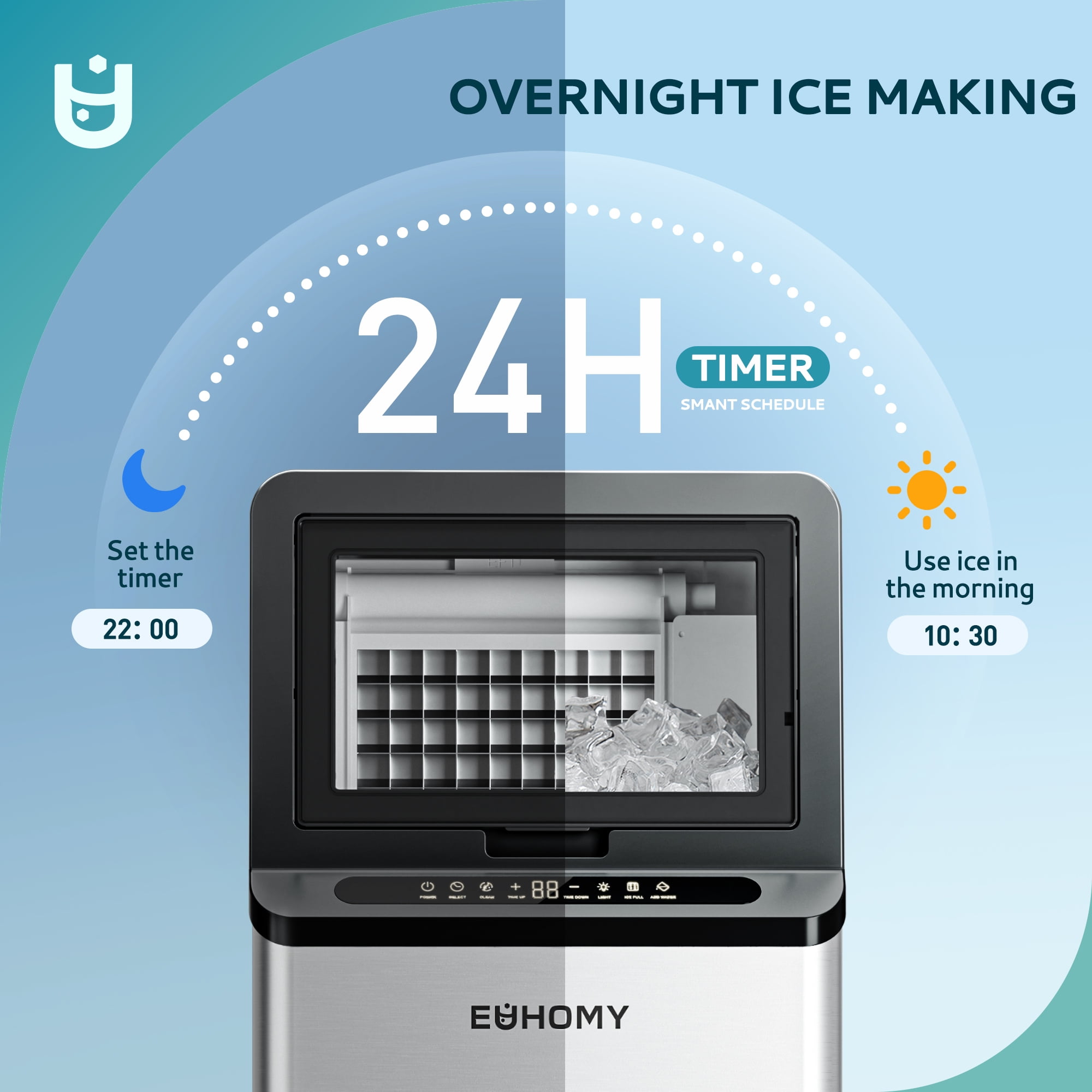Euhomy Commercial Ice Maker Machine – Produces 100 lbs of Ice Daily,Meet the Euhomy commercial ice maker, designed to solve all your ice needs! Capable of producing an impressive 100 lbs of ice per day and storing up to 33 lbs, this machine ensures you’ll always have ice on hand. Ideal for home parties, busy restaurants, or grocery stores, this ice maker is the perfect choice for both residential and commercial settings. Euhomy Commercial Ice Maker – 100 lbs/Day Freestanding Ice Machine for Home & Business Use 100 lbs of Ice Per Day 33 lb Storage Bin ETL Certified for Commercial Use Smart LCD Control Panel Self-Cleaning Function Energy-Efficient & Quiet Operation Ideal for Home, Restaurants, Bars, Hotels, and More Easy Maintenance & Cleaning