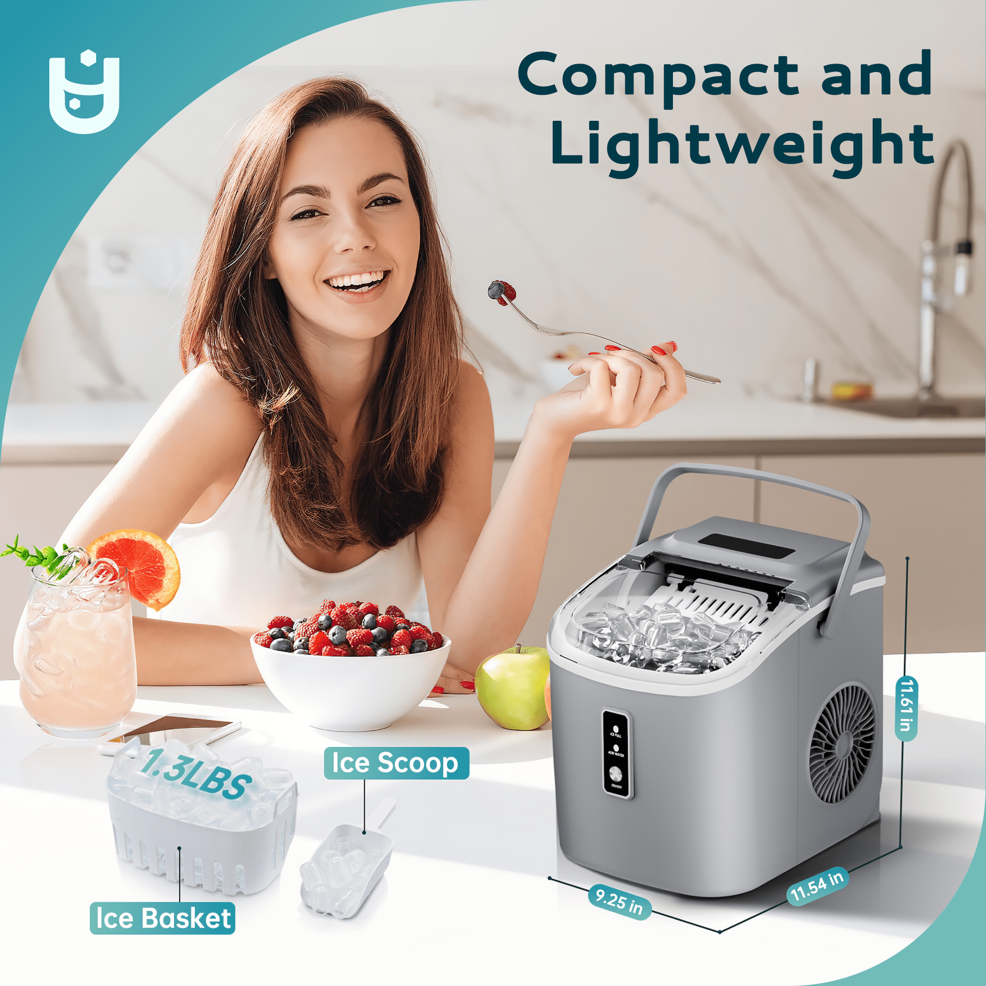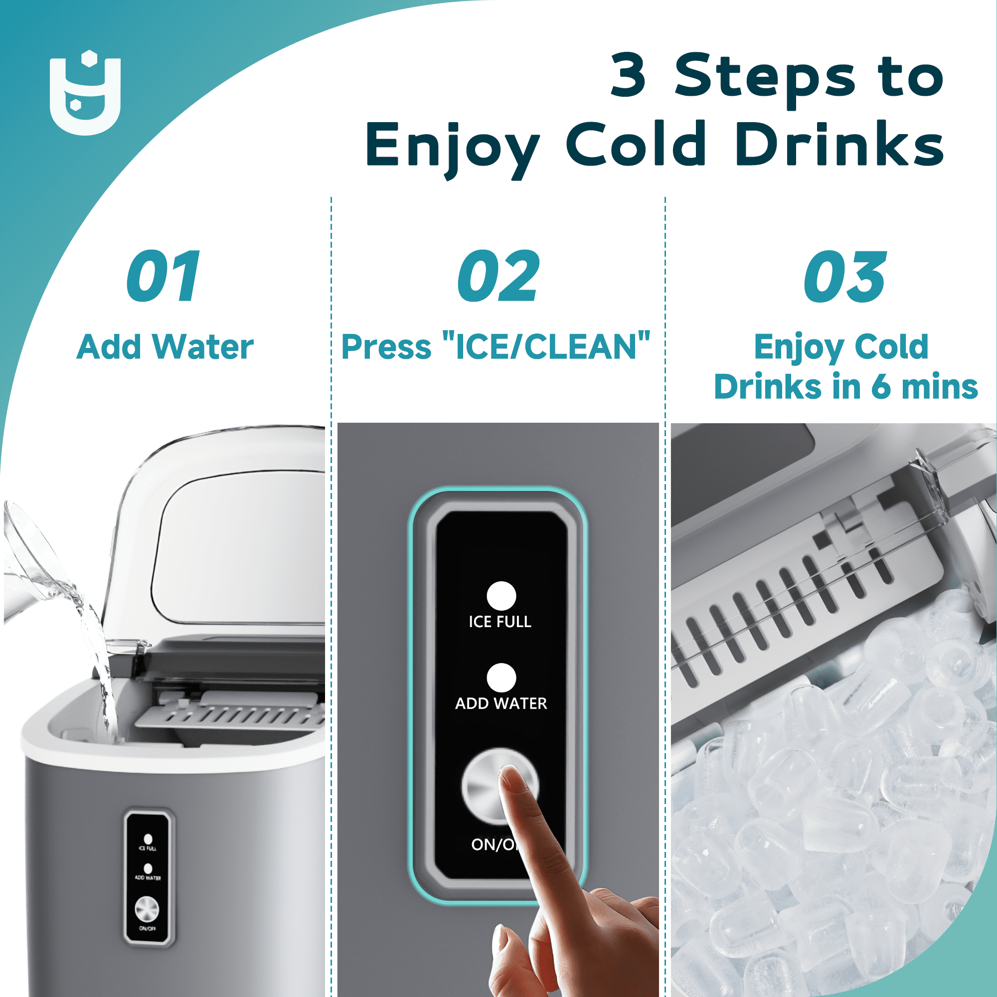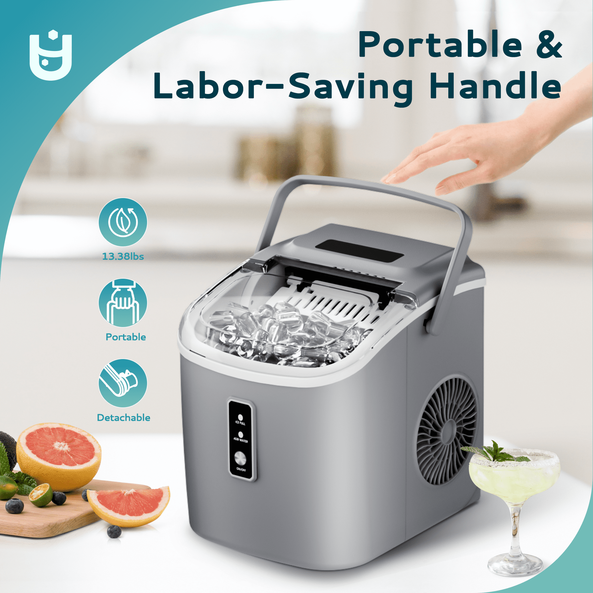 Lightning-Fast Ice Making : Our Euhomy ice maker only takes 6 minutes to make 9 bullet-shaped ice cubes. With a 1.2L water tank and powerful compressor, the portable ice maker easily makes maximum ice capacity to 26lbs ice per day and holds up to 1.3lbs ice at a time. Portable design :Our ice maker comes with a sturdy handle, weighs only 13.38lbs and with compact size. Those features make ice maker easy to carry and perform well on any occasions like Kitchen/Home/Camping/RV. Effortless Maintenance : With a easily control panel that simplifies operation to merely two steps-filling with water and pressing the”Ice/Clean” button-our ice maker. Our countertop ice maker includes an automatic cleaning function, simplifying upkeep and freeing you from manual cleaning tasks. Quiet Operation: Experience the convenience of a compact ice maker with a whisper-quiet operation. With large see-through window visualized design, Our ice maker allowing monitor the ice production process. Equipped with a 170w upgraded compressor that 4kWh per day energy consumption to save your electricity bills. Healthy Material: Providing healthy and safe food to customers is an important issue. Euhomy ice maker is made of food grade material, which can effectively take care of your health. The newly designed countertop ice maker produce the most popular bullet-shaped smooth ice cubes, which won’t stick together easily or hurt your hands or mouth even are excellent for cold drinks or iced coffee