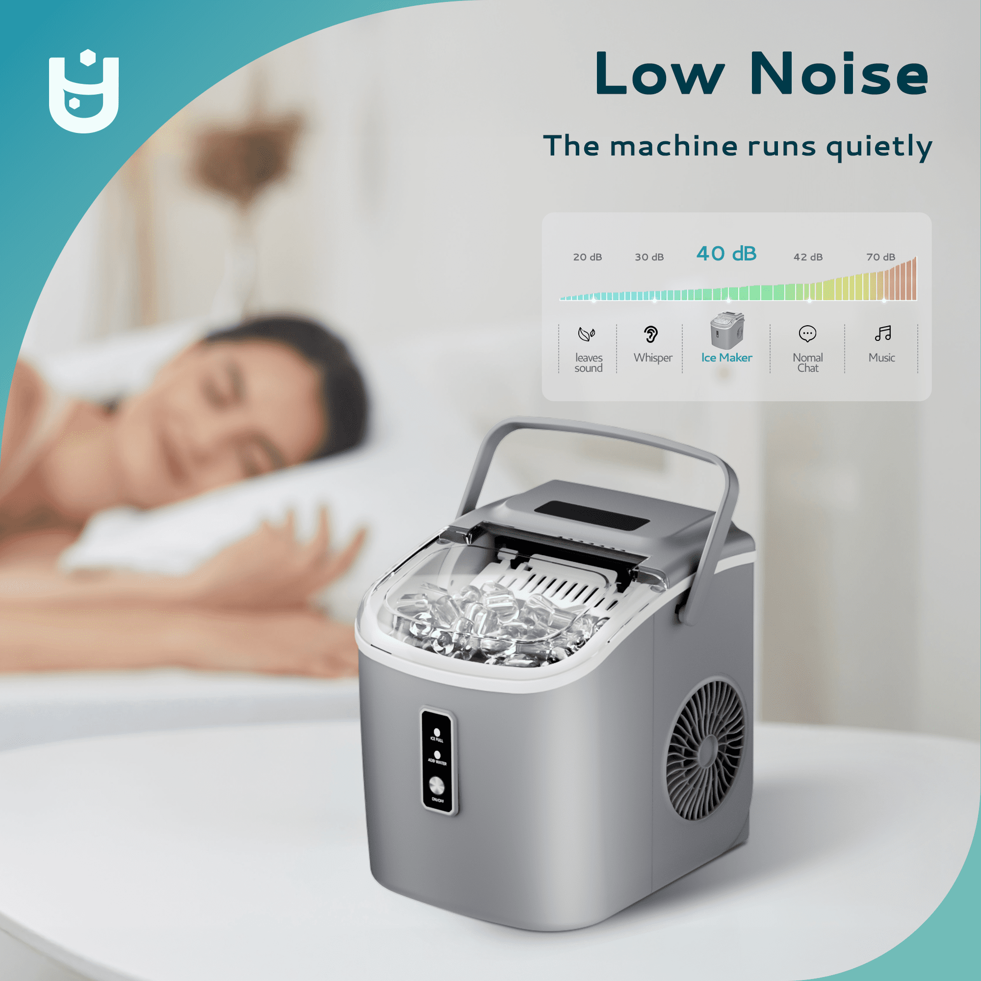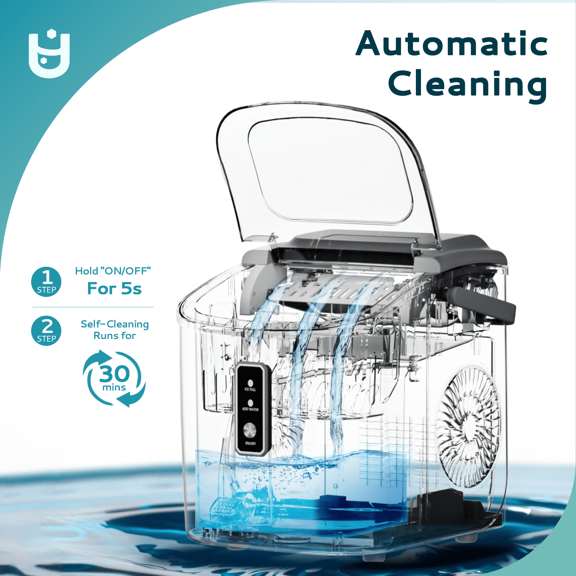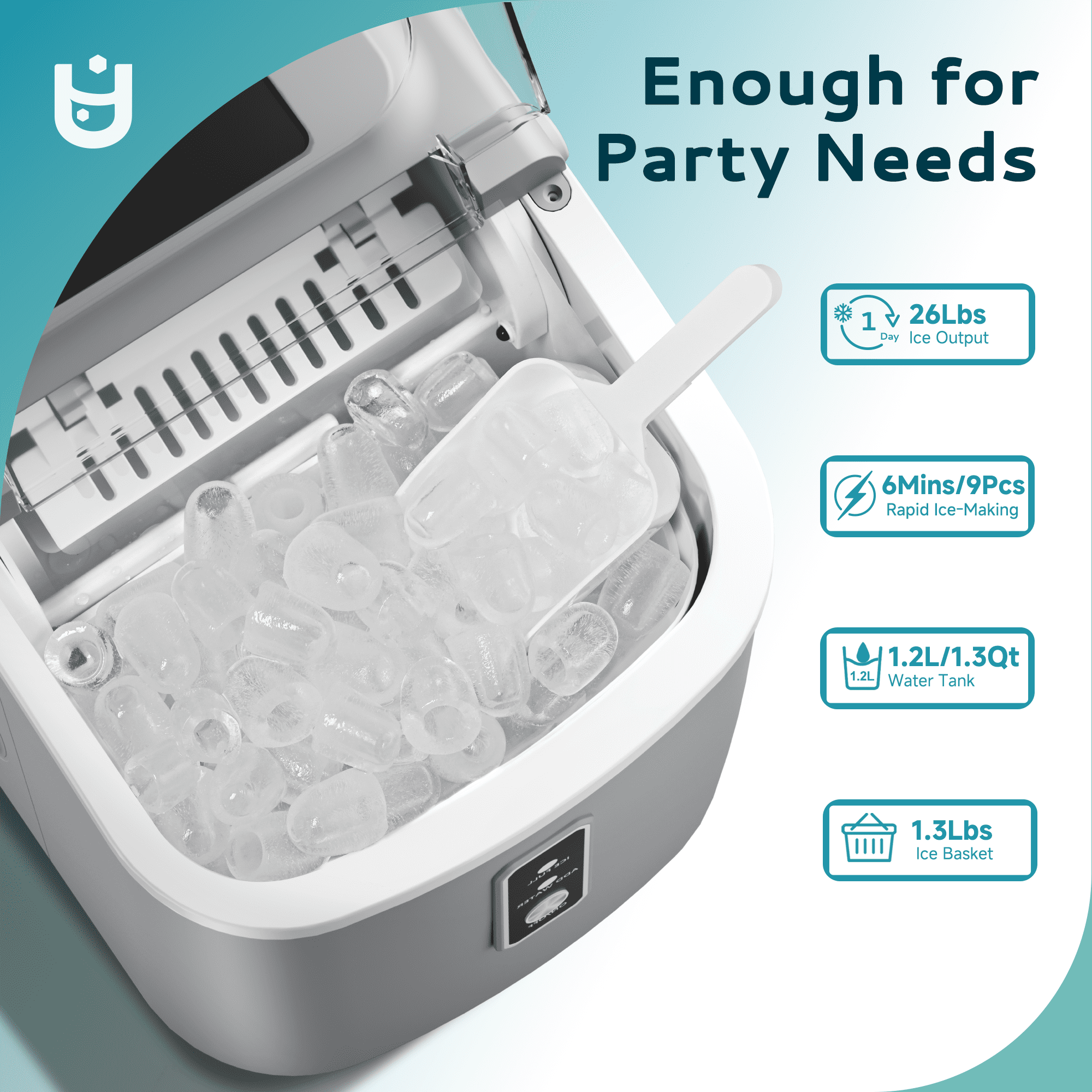 Lightning-Fast Ice Making : Our Euhomy ice maker only takes 6 minutes to make 9 bullet-shaped ice cubes. With a 1.2L water tank and powerful compressor, the portable ice maker easily makes maximum ice capacity to 26lbs ice per day and holds up to 1.3lbs ice at a time. Portable design :Our ice maker comes with a sturdy handle, weighs only 13.38lbs and with compact size. Those features make ice maker easy to carry and perform well on any occasions like Kitchen/Home/Camping/RV. Effortless Maintenance : With a easily control panel that simplifies operation to merely two steps-filling with water and pressing the”Ice/Clean” button-our ice maker. Our countertop ice maker includes an automatic cleaning function, simplifying upkeep and freeing you from manual cleaning tasks. Quiet Operation: Experience the convenience of a compact ice maker with a whisper-quiet operation. With large see-through window visualized design, Our ice maker allowing monitor the ice production process. Equipped with a 170w upgraded compressor that 4kWh per day energy consumption to save your electricity bills. Healthy Material: Providing healthy and safe food to customers is an important issue. Euhomy ice maker is made of food grade material, which can effectively take care of your health. The newly designed countertop ice maker produce the most popular bullet-shaped smooth ice cubes, which won’t stick together easily or hurt your hands or mouth even are excellent for cold drinks or iced coffee
