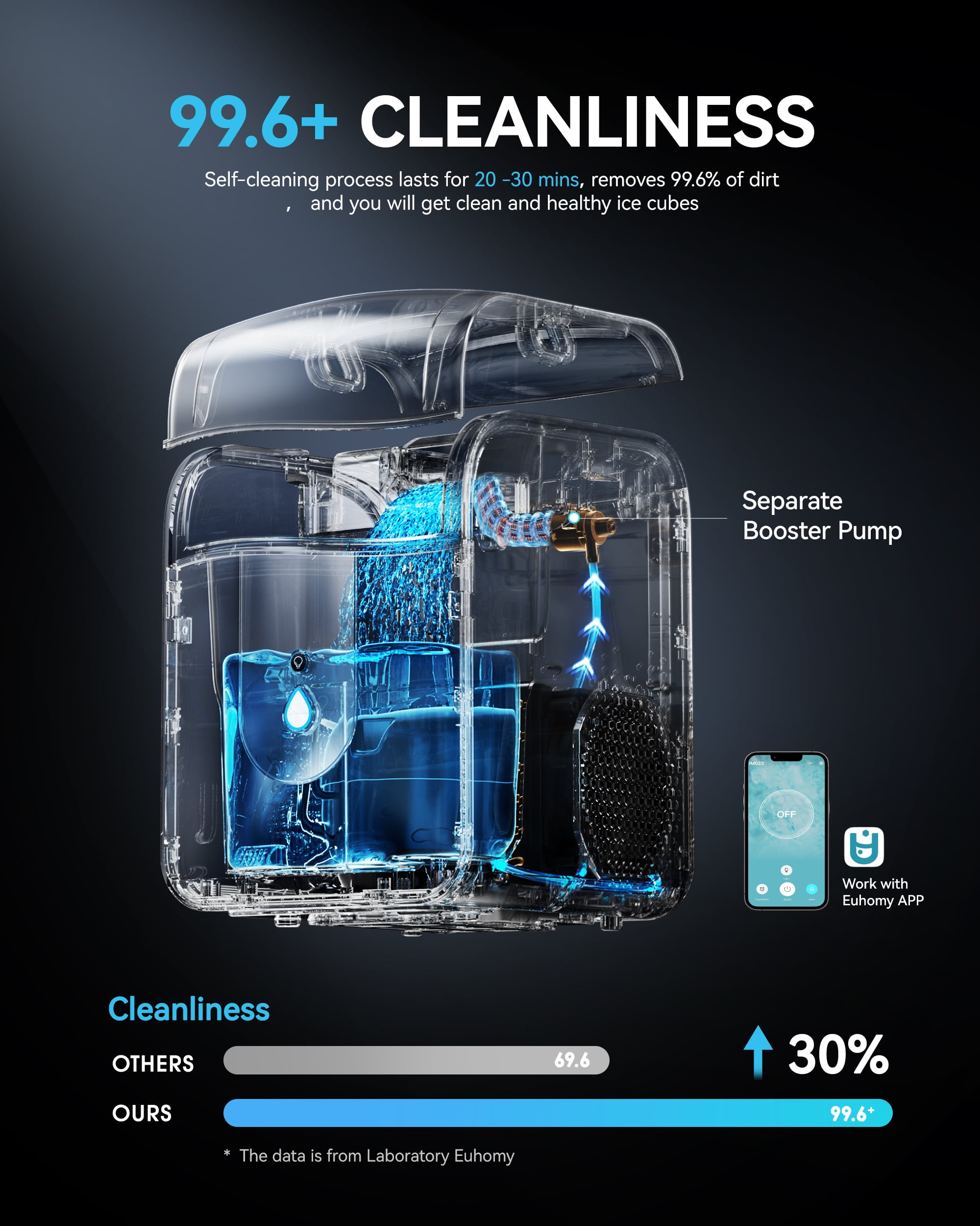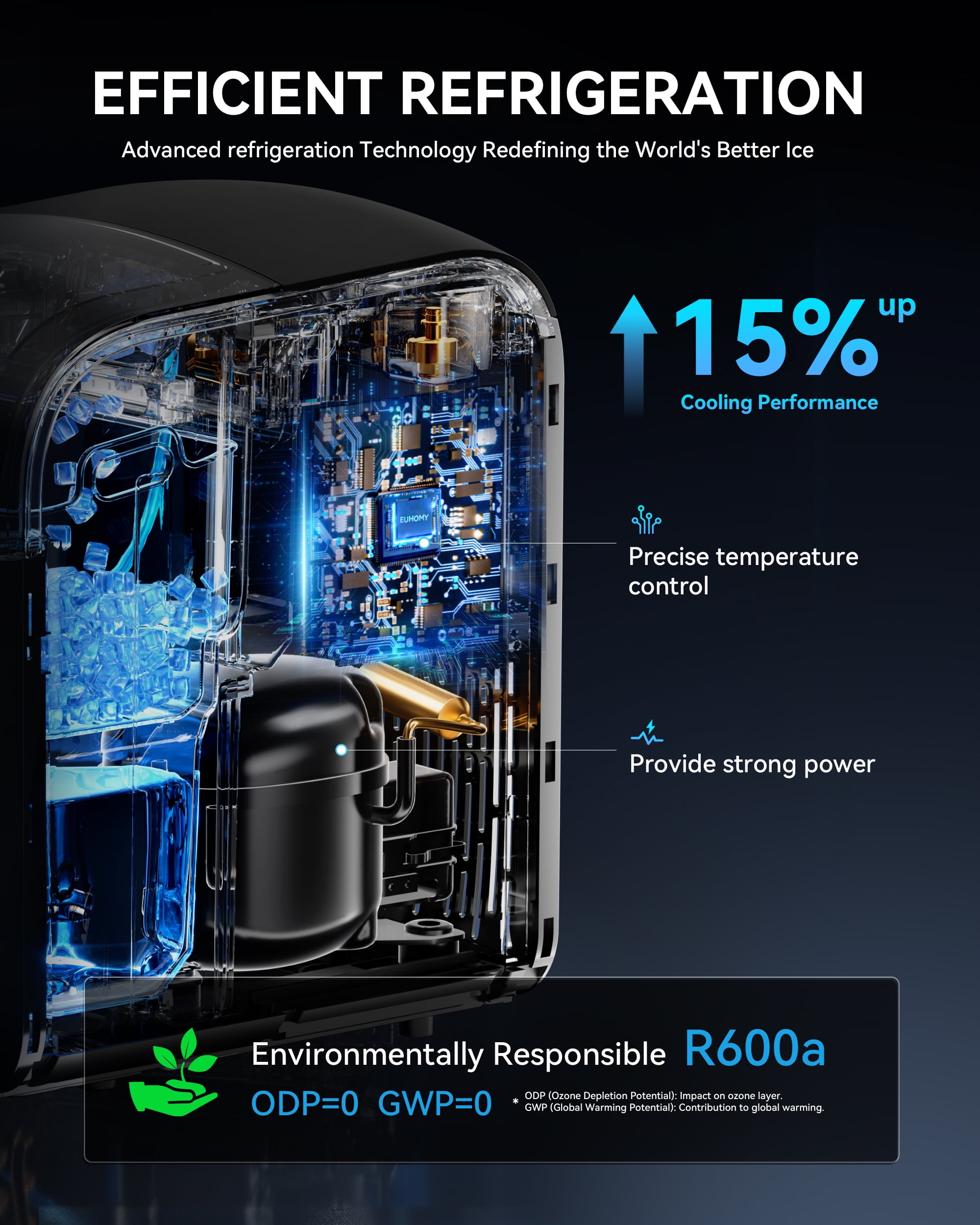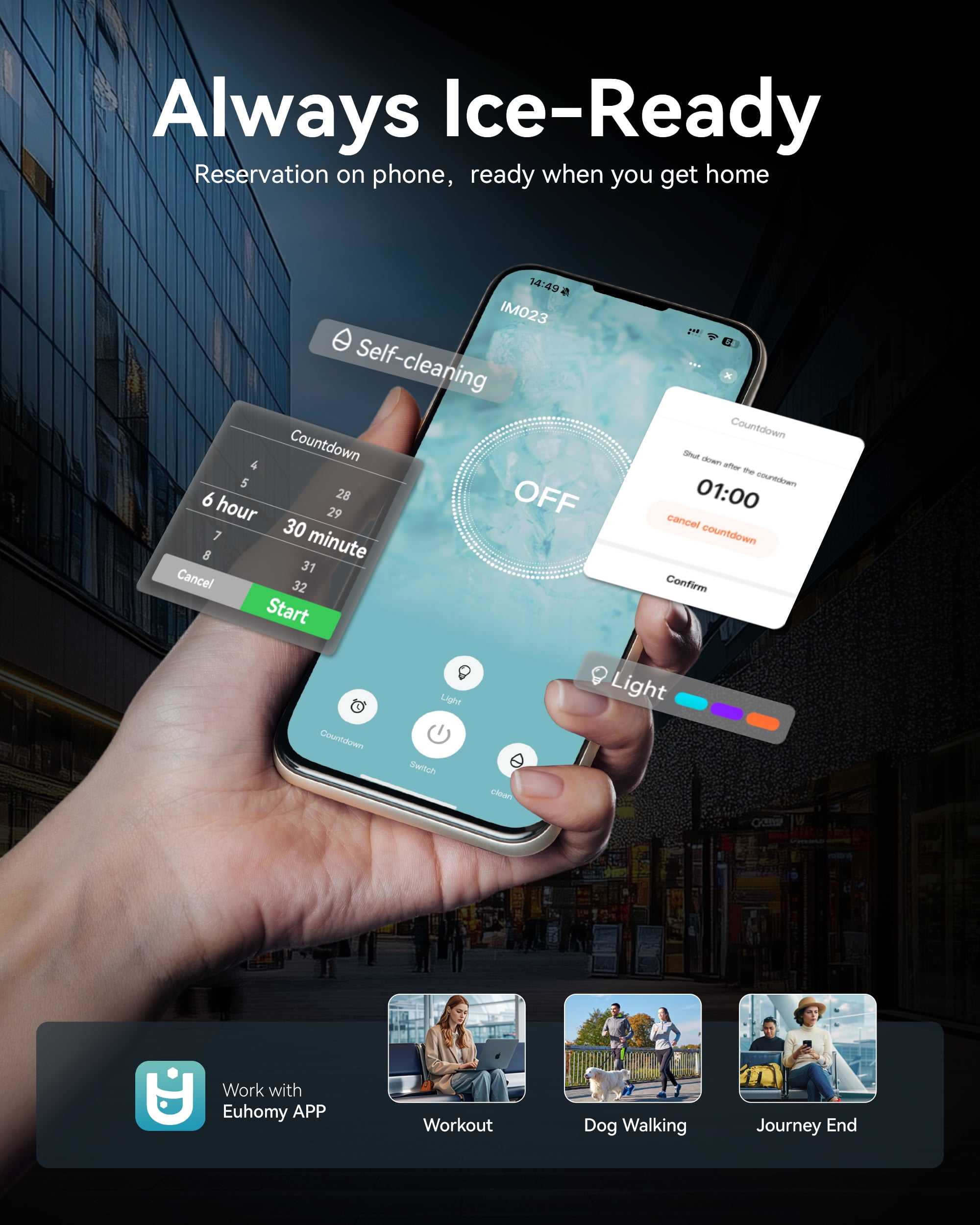 The EUHOMY 40lbs Nugget Ice Maker with APP Control delivers fast, chewable nugget ice in just 15 minutes and up to 40 pounds per day. Featuring smart app and touch control, self-cleaning, a 1.1L water reservoir, and a 6lbs bin, it’s the perfect solution for homes, offices, RVs, and more. The compact black design fits seamlessly on countertops, while its quiet performance and hygiene-focused features make it an everyday essential. Backed by EUHOMY’s reputation for quality and innovation, this ice machine elevates your ice-making experience.