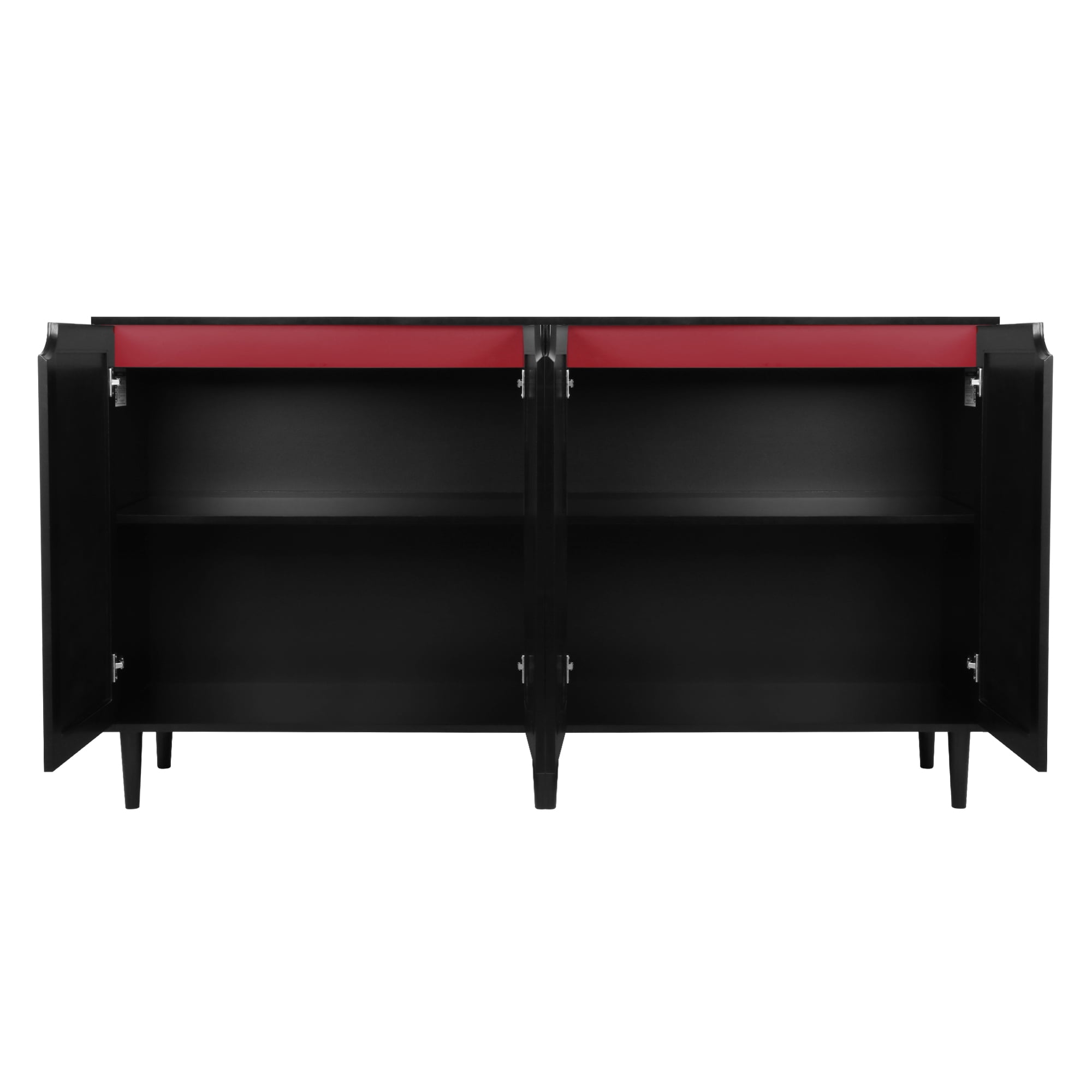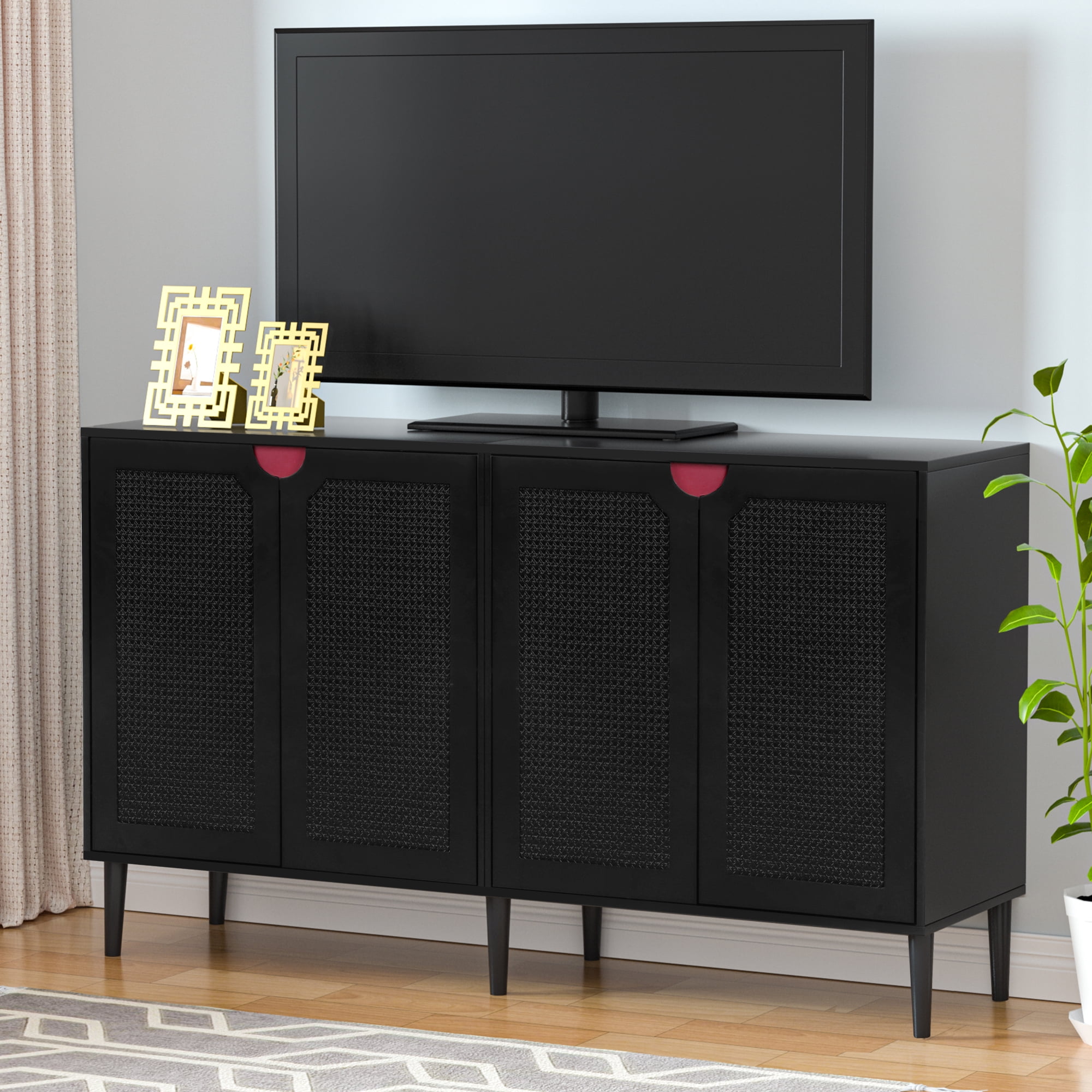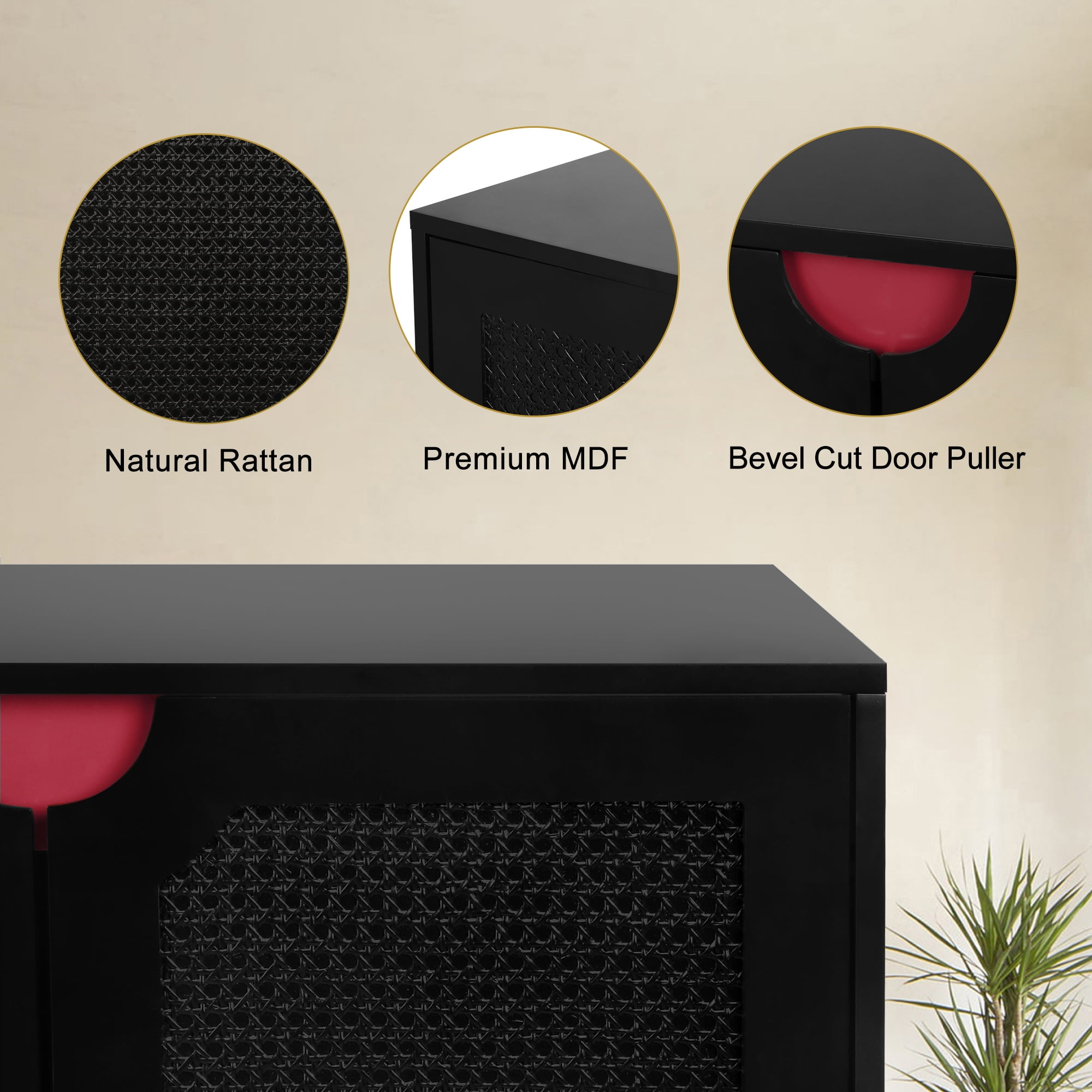 Eumyviv Mid Century Storage Cabinet, Rattan Buffet Sideboard with 4 Doors for Kitchen Living Room Bedroom Hallway, Black H0108