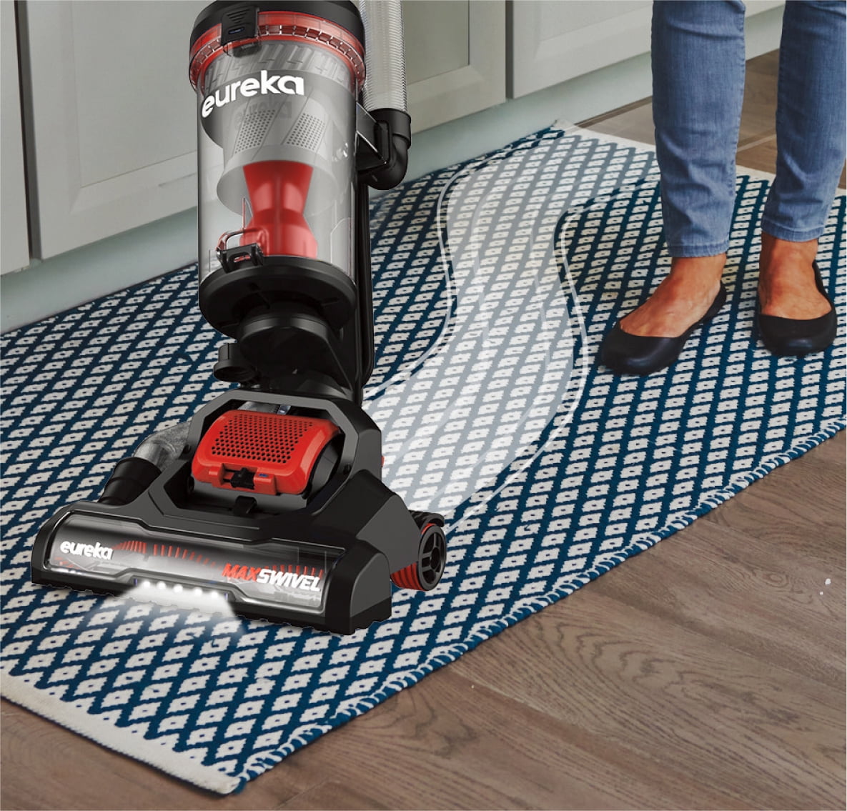 Whole Home Cleaning: The Eureka NEU351 Deep cleans carpets, hard floor and above-floor surfaces Swivel Steering: Easily maneuver your upright vacuum cleaner around furniture and in tricky spaces Above Floor Cleaning: Quick release handle and 7.5ft of extended reach for easy above floor cleaning LED Headlights: Easily spot dust and debris that might otherwise be missed Perfect for Pet Owners: On-board accessories include: turbo pet tool helps remove pet hair from upholstery, crevice tool for targeted cleaning and dusting brush for delicate surfaces