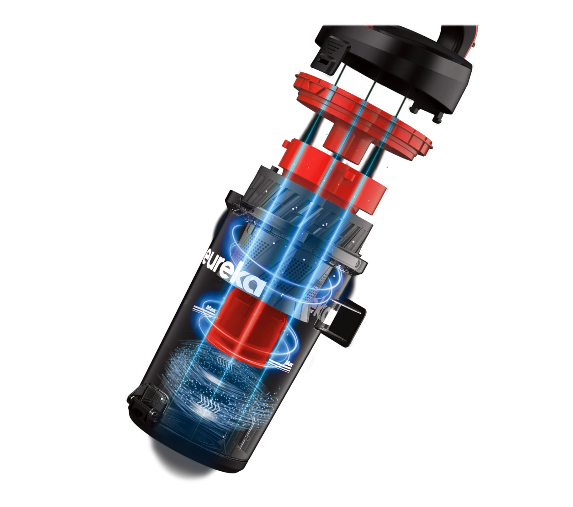 The Eureka Max Swivel Pro Pet upright vacuum cleaner is your whole home cleaning solution! Swivel steering makes it easy to maneuver around furniture and in tight spaces. Lightweight at only 10lbs make it easy to move from room to room and up and down stairs yet powerful to deliver a deep clean on both carpet and hard floor. This new upright vacuum cleaner is compact enough to get into tight spots and powerful enough for the big jobs. Dual cyclone filtration provides no loss of suction so the performance of this vacuum doesn’t decrease as the dust cup fills up. LED headlights spot dust and debris that might otherwise be missed. Easily clean above floor and hard-to-reach areas with 7.5ft of extended reach using the pet turbo tool, crevice tool and dusting brush conveniently stored on-board.