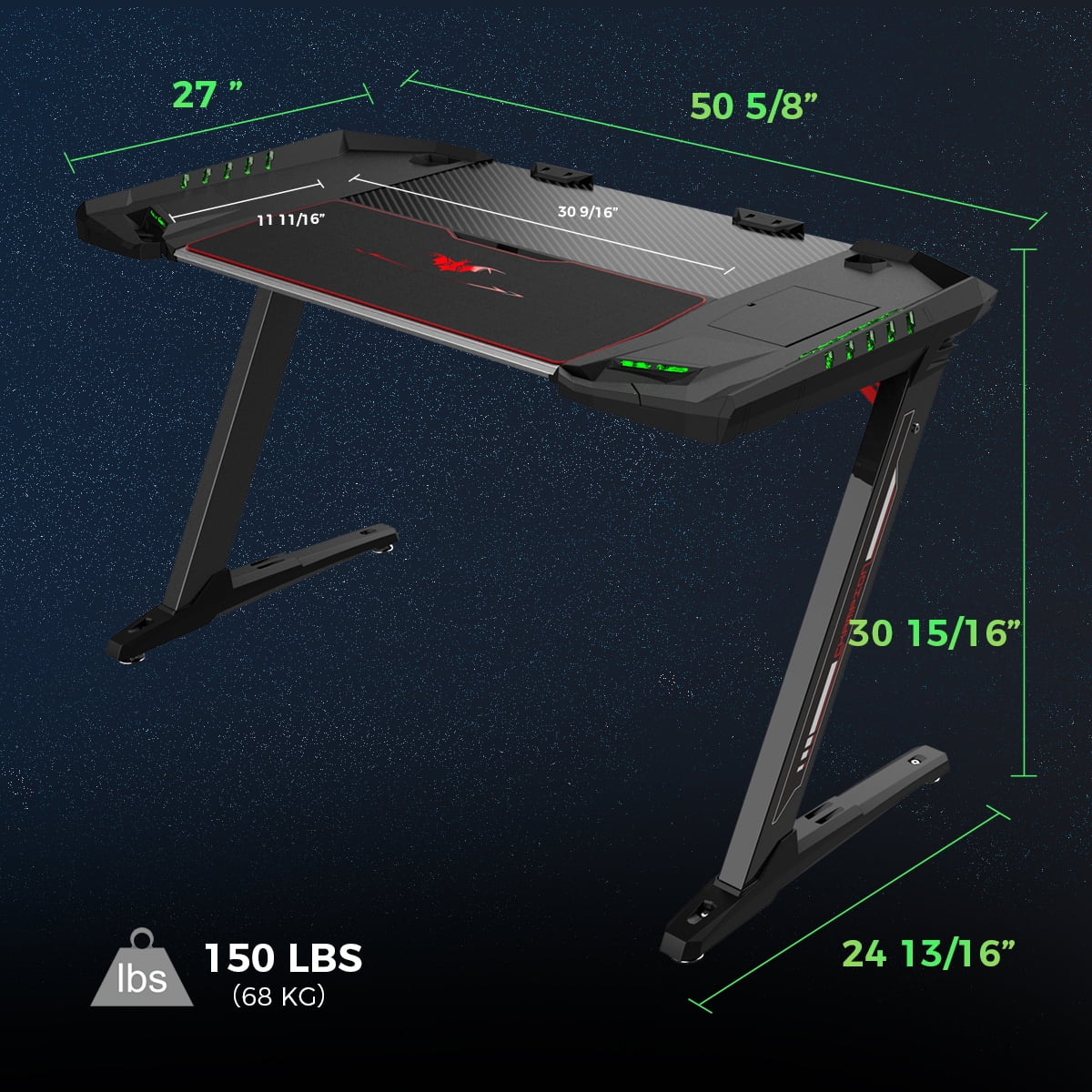 Eureka Ergonomic Z2 50 inch Black Carbon Fiber Surface Gaming Desk