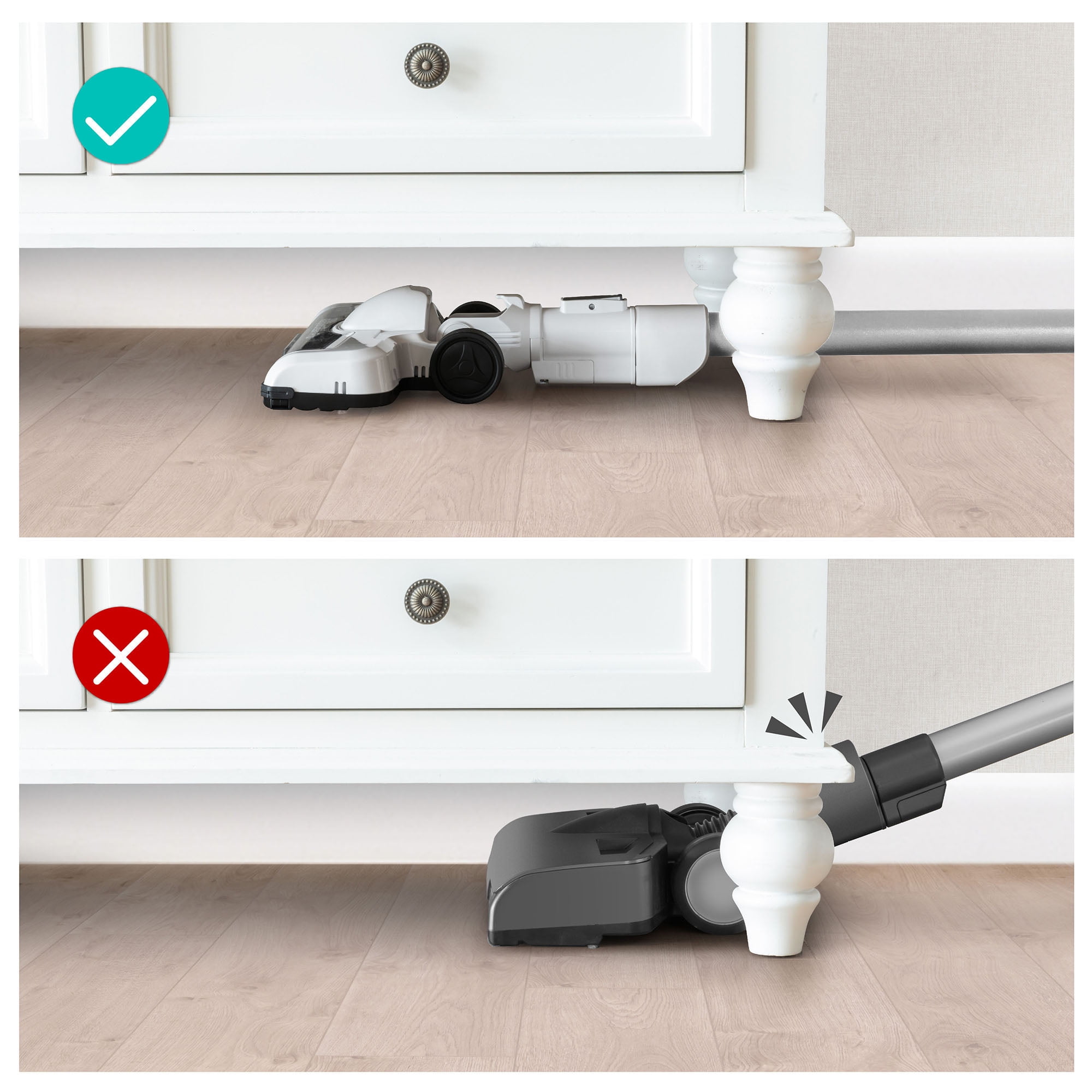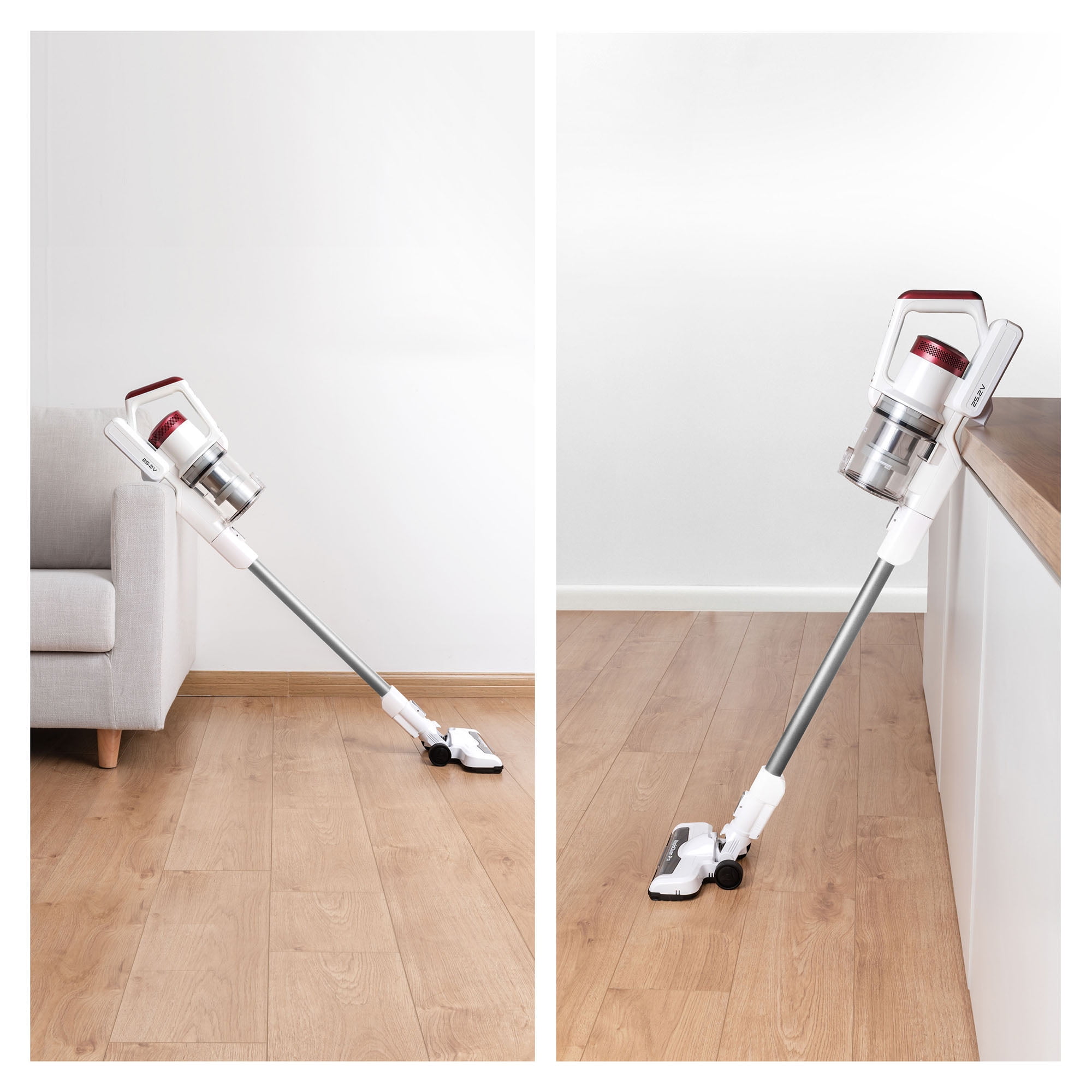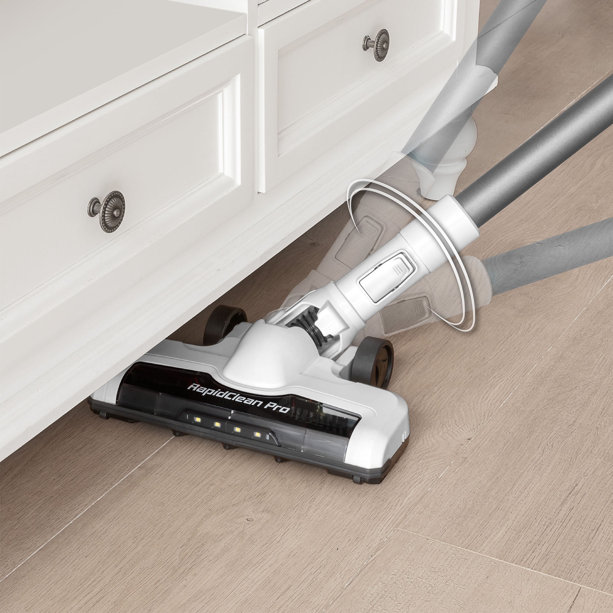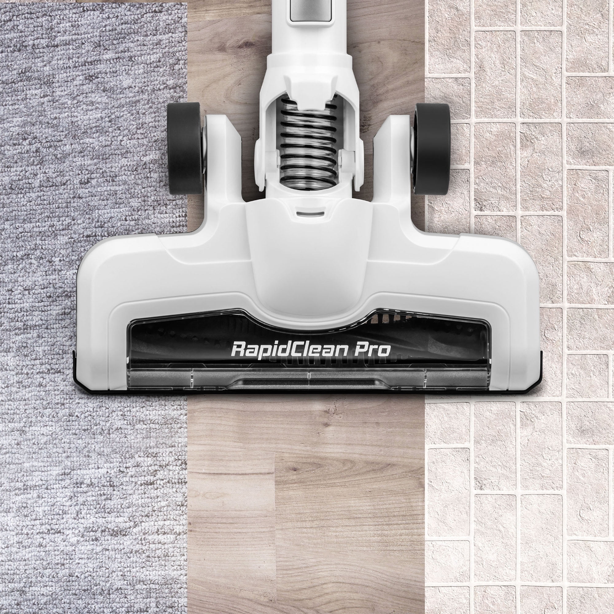 Eureka Rapid Clean Pro Cordless Stick Vacuum Cleaner, NEC182, New Efficient Cordless Cleaning: Powered by the latest motor technology the Eureka Rapid Clean Pro Cordless Stick Vacuum makes cleaning convenient and thorough Up to 40 minutes of efficient cordless cleaning with fingertip controls for two cleaning modes to switch between carpet and hard floor Lightweight: Weighing only 5.2 lbs. Under Furniture Reach: We moved the dust cup to the front so you can lay the vacuum completely flat to reach under beds and furniture with ease. Converts to a hand vac to clean the car, stairs and hard-to-reach places LED headlights help you see dust and debris that might otherwise be missed Easy Empty removable dust cup so there is no need to touch dirt Grab & go convenience with wall mount for easy storage. Also included: crevice tool and 2-in-1 dusting brush
