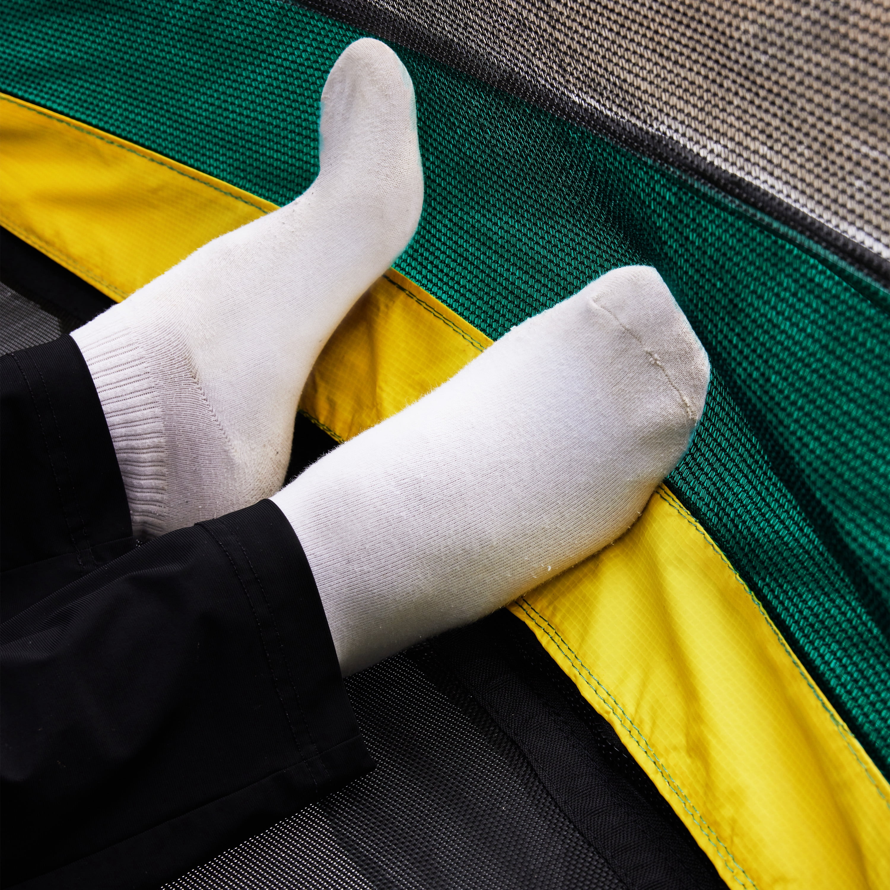 12FT TRAMPOLINE — Jump mat is made of UV-protected polypropylene, woven to prevent slipping. Extra thick vinyl-coated spring pad is fade resistant. The mat is weatherproofed and so the trampoline can be left outdoors. The safety pads are here to prevent any injury due to touching the springs and impacting hard areas. PREMIUM QUALITY — Our Trampoline is Premium Quality. The heavy-duty PP jumping mat is stitched perfectly well. All springs and top rails are designed for fixing the whole trampoline. It offers you a sense of secure feeling while you jump on the mat. All trampoline materials have passed quality inspections and environmental protection inspections. Each trampoline is manufactured by our professional factory.SAFETY — The Robust Steel Pipe and Safety Net is placed on the periphery of the trampoline guard. Increase the space of the trampoline, also enhances its stability and safety. Our trampoline components contain 72 Galvanized Springs, safety for your fitness and play. CAPACITY — The trampoline can accommodate 6~8 kids simultaneously. This is a good place for children to make friends, and it will attract many children to come and play. Which will become a playground for children and parents can spend happy time with them.
