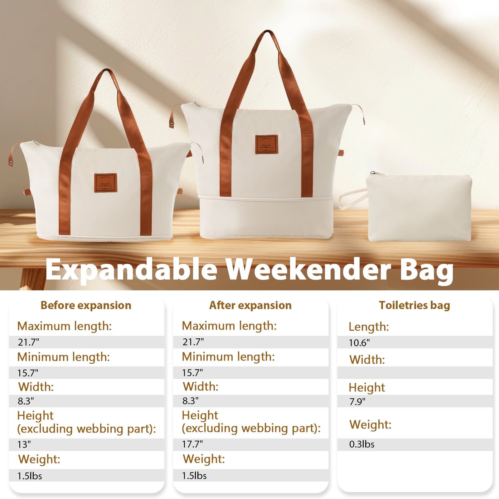 【Luggage Set 3 Piece】3 piece set offers a 20″ luggage, a weekender travel bag and a toiletry bag. The 20-inch carry-on luggage meets the size requirements of most airlines – 22x14x9, allowing you to travel worry-free. Perfect for weekend getaways and short trips. 20-inch size:13.9″x 9″x 21.85″. 【Lightweight and Durable】20-inch suitcase is made of lightweight, durable and impact-resistant high-quality ABS material, and the travel duffel bag and toiletry bag are made of waterproof and scratch-resistant Oxford cloth, providing comprehensive security for all your belongings. 【Double Universal Wheels】Superior quality, silent-running, multi-directional silent spinner wheels assure smooth maneuverability. 360° double wheels are more durable and adaptable to various road conditions. Bring comfort to your journey. 【TSA Approved Locks and Upgraded Zipper】Upgraded zipper bites tightly and pulls smoothly, effectively preventing the chain heads from falling off and zippers from tearing. Paired with a 3-dial TSA lock, it provides security and convenience for travel. 【Expandable】Expandable duffel bag dimensions (front shape is trapezoidal): longest length: 21.7″, shortest length: 15.7″, width: 8.3″, height: 13″, expanded height: 17.7″. The duffel bag comes with a trolley sleeve with zippered pocket, and you can conveniently attach it to the adjustable handle.