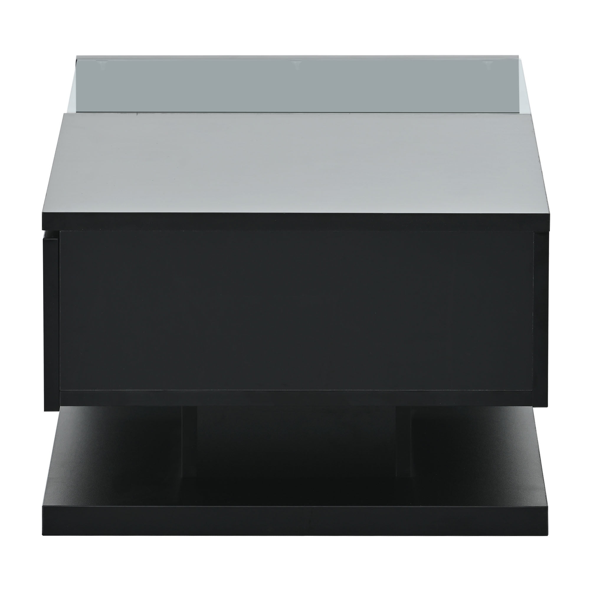 EUROCO 39.3″ Coffee Table with Tempered Glass, Wooden Cocktail Table with High-gloss UV Surface, Modernist 2-Tier Rectangle Center Table for Living Room, Black