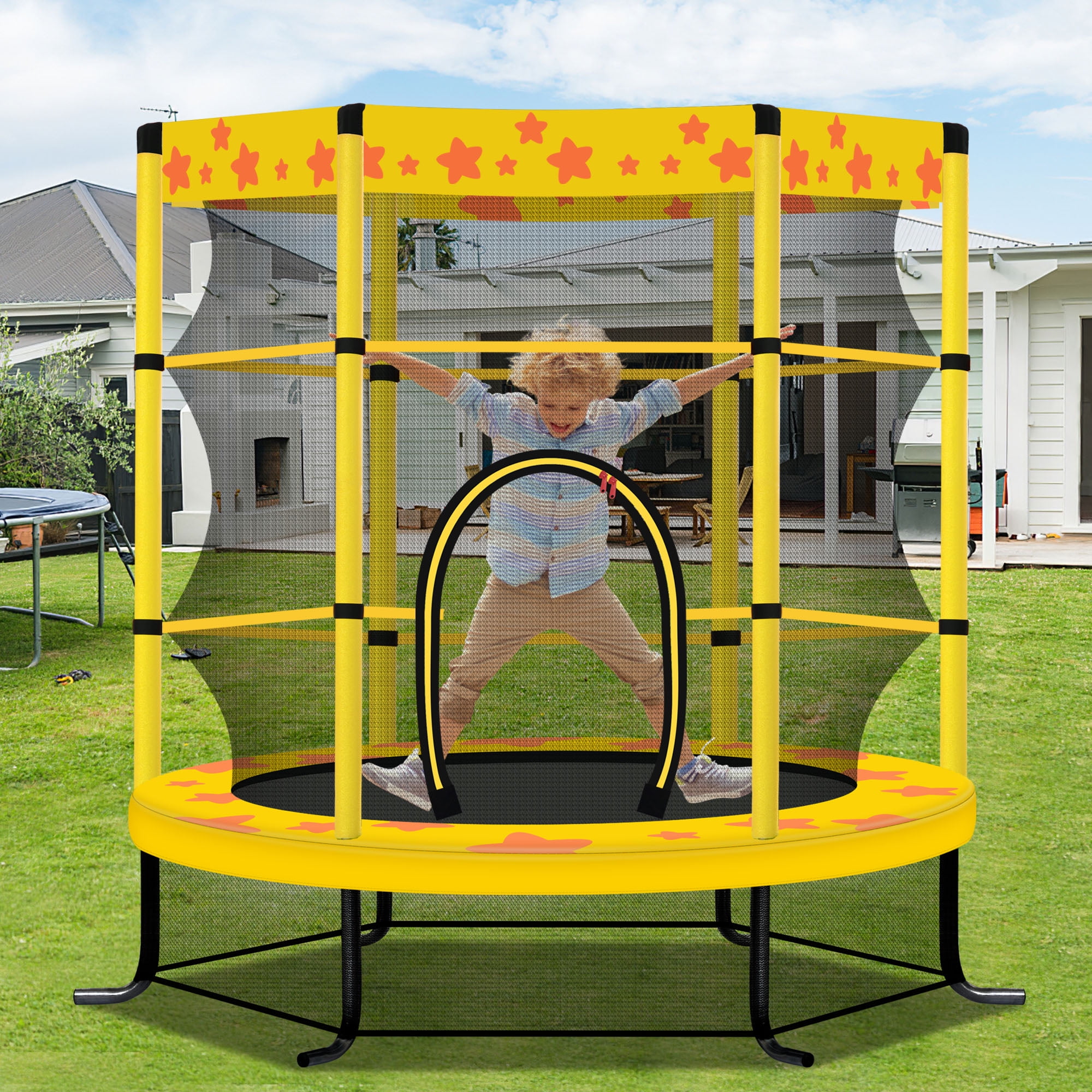 EUROCO 55 Inch Kids Trampoline with Safety Enclosure Net, 4.5FT Outdoor Indoor Trampoline for Kids