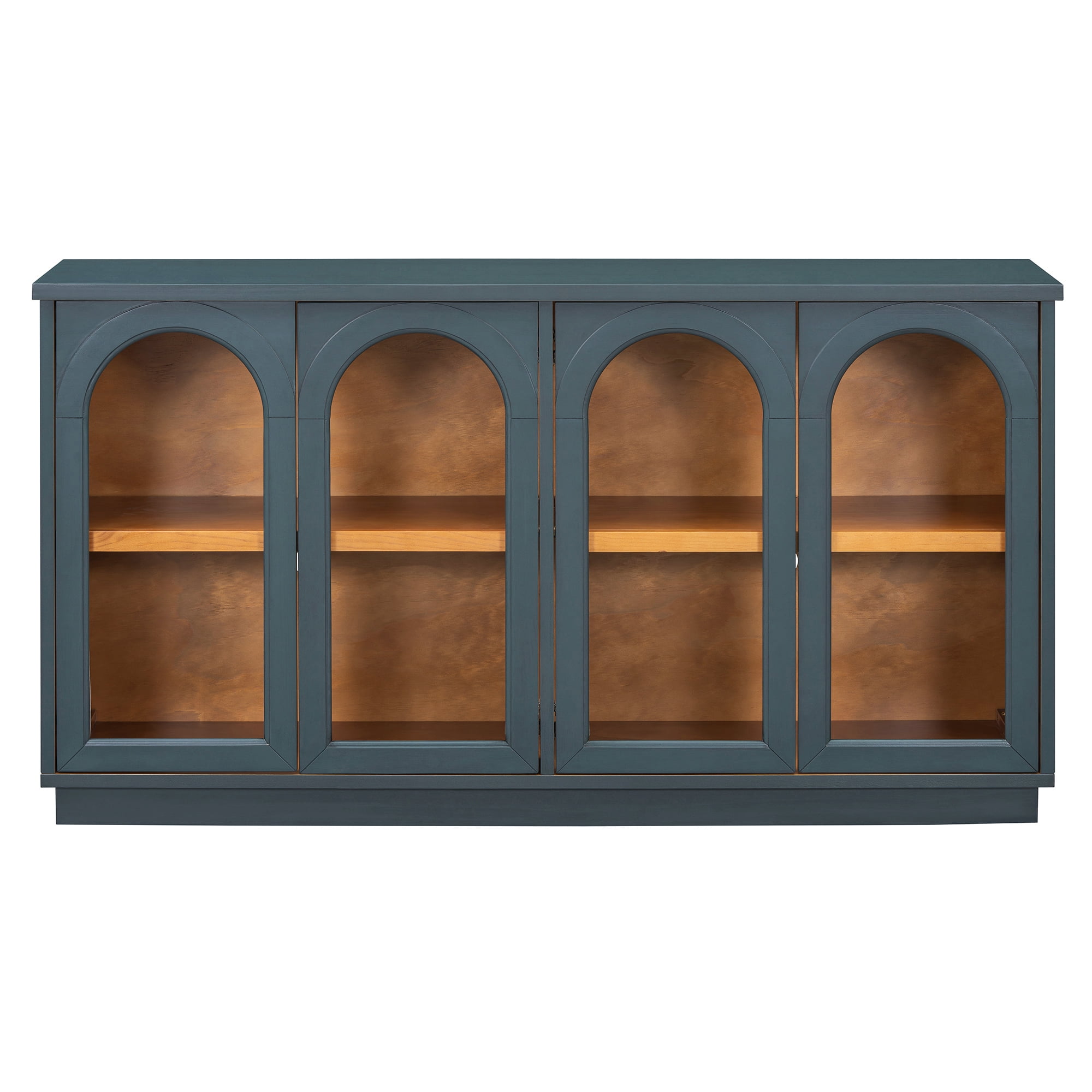 EUROCO 57.7″ Large Sideboard Buffet Cabinet with Storage, Arched Cabinet with Glass Doors and Adjustable Shelves,Kitchen Cabinet for Kitchen, Living Room, Hallway,Navy