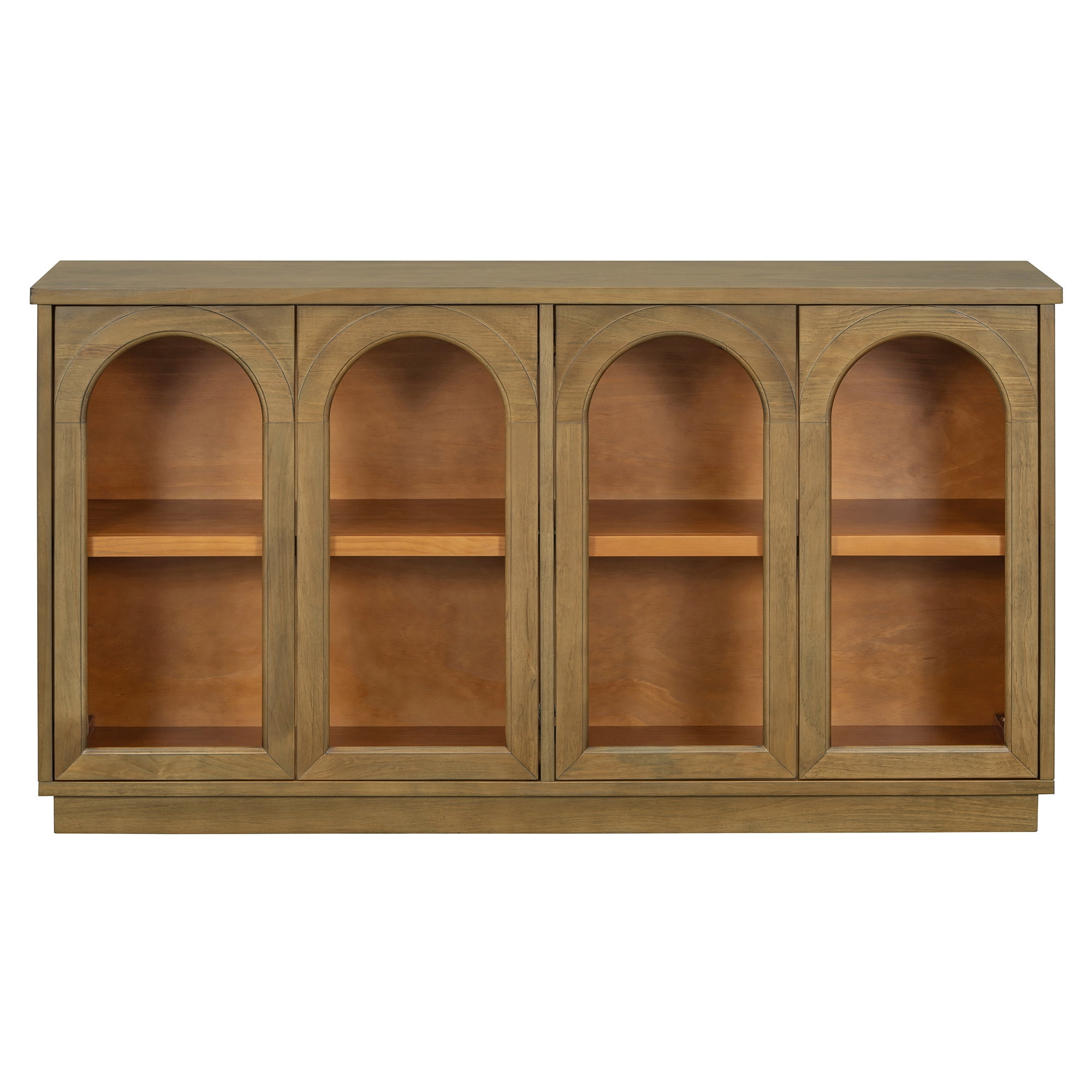 EUROCO 57.7″ Large Sideboard Buffet Cabinet with Storage, Arched Cabinet with Glass Doors and Adjustable Shelves,Kitchen Cabinet for Kitchen, Living Room, Hallway,Old Pine