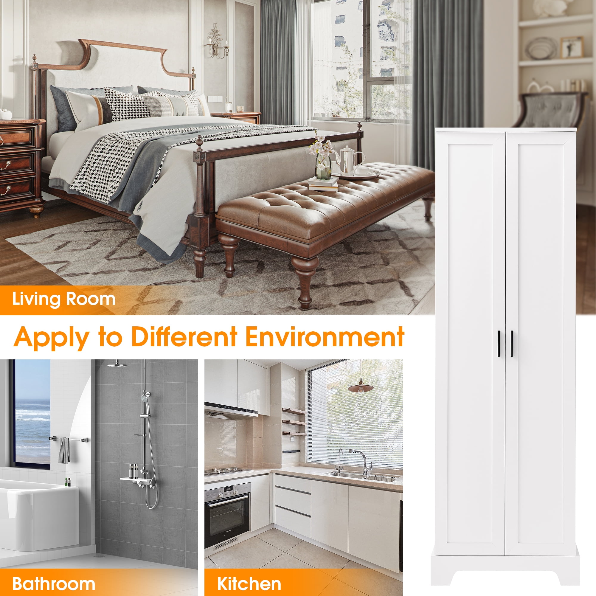 EUROCO 71.2″ Storage Cabinet,Wood Garage Cabinets with Doors and Adjustable Shelves, Accent Versatile Cabinet, Tall Cabinet for Tools, Office, Home, Shops, White