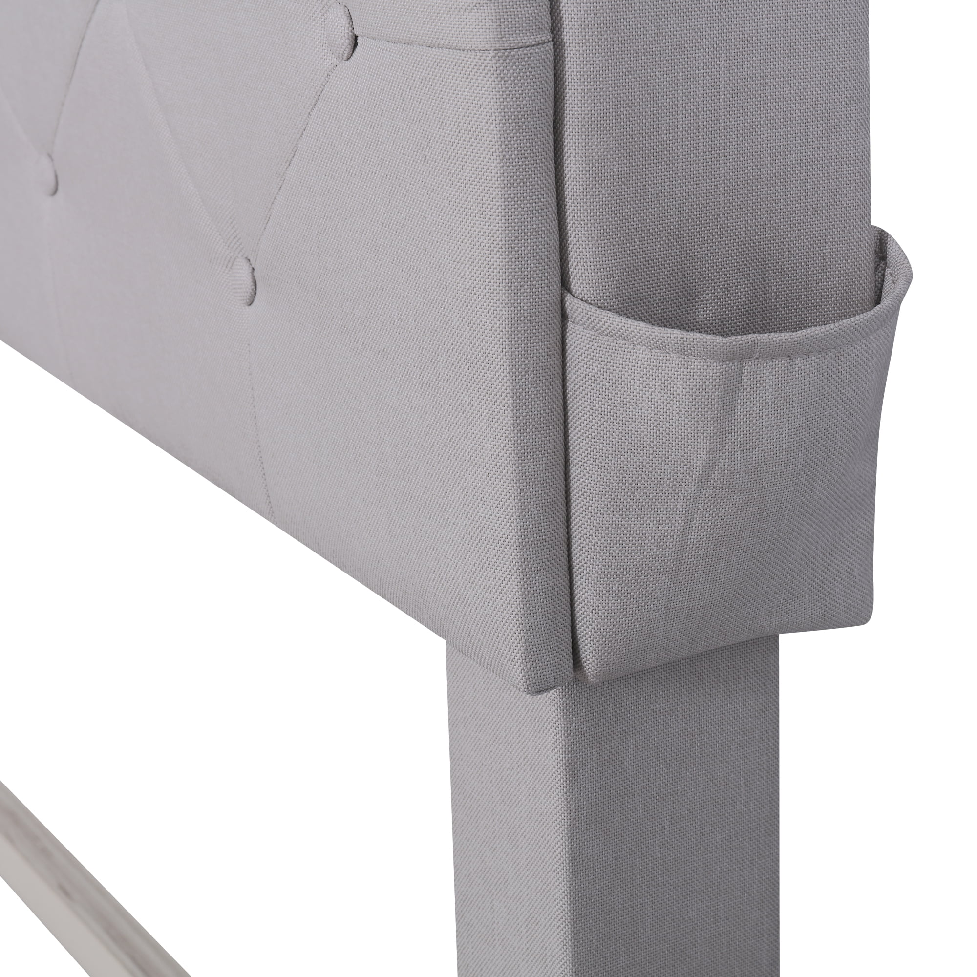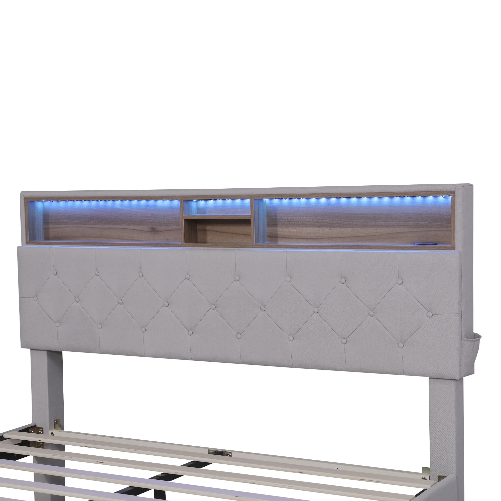 Euroco Adult Queen Modern Upholstered Standard Bed with Charging Port and Drawers, Beige Overall Product Dimension: 83.3”L x 60”W x 44.7”H Inner Size: 80” x 58.7” Bed Weight Capacity: 660 lbs Recommended Mattress Thickness: 8”-10” Features a convenient charging port for easy access to power Includes two spacious drawers for additional storage Upholstered in durable linen with stylish button-tufted details