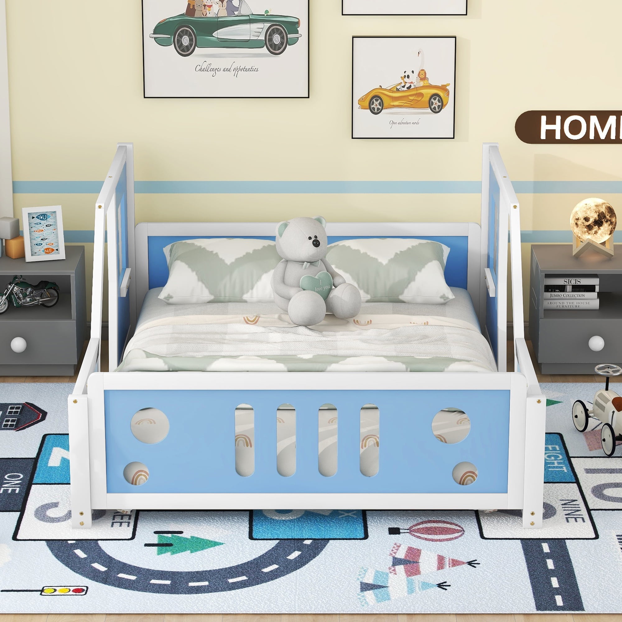 Bedtime just got more fun with this kids’ car-themed bed! Your mini driver will enjoy the realistic look and space to spread out in their own full-sized bed. This Euroco cool bed frame features tires, rims, and decals that look just like a real car for kids. Any automotive fan will be excited to fall asleep in this bed after tons of playtime pretending to be a real driver! Having blue and white for you to choose, suit for any room decorations.
