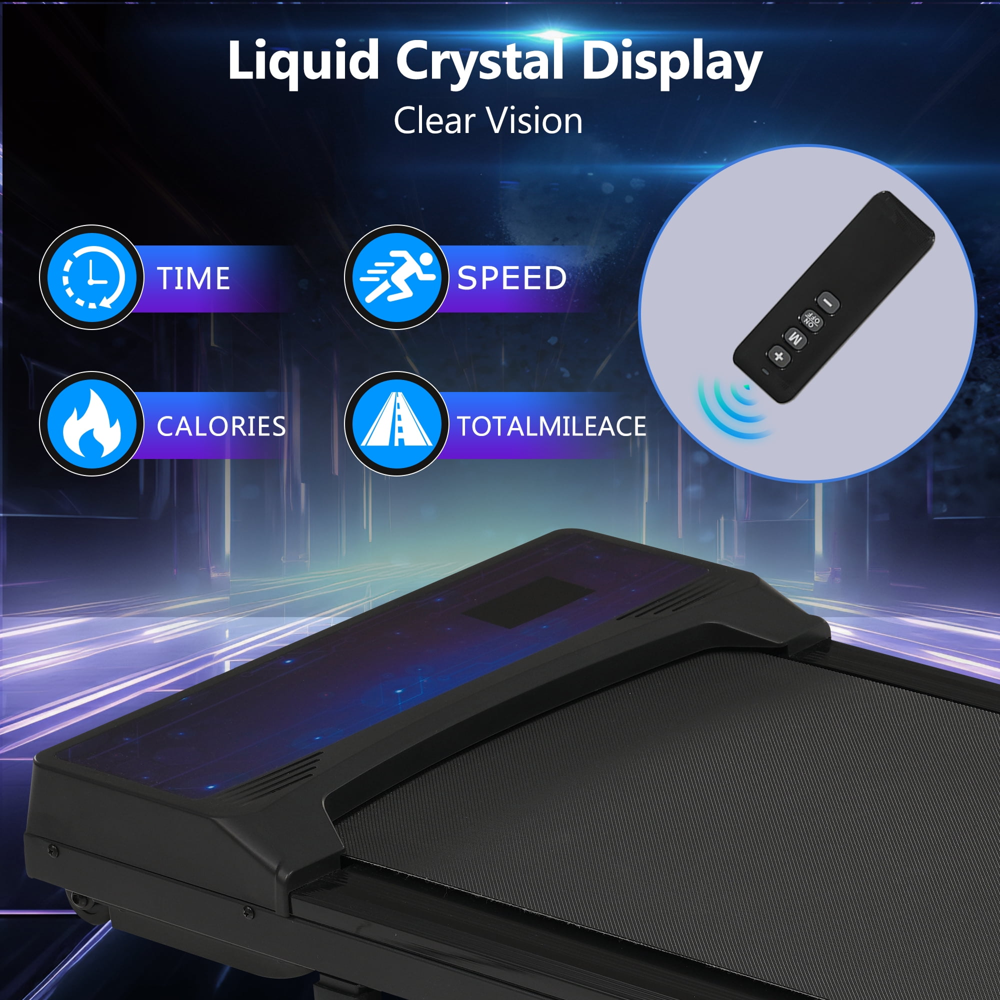 Euroco Electric Walking Exercise Treadmill, Black, 265 lb Speed range of 0.5 4 MPH for versatile workout intensity Equipped with an incline feature for enhanced training options Weight capacity of 265 lbs, suitable for a variety of users Compact design with dimensions of 49.40″ x 20.27″ x 4.33″ for easy storage No installation required; simply take it out and start using Transport wheels for effortless movement and storage under furniture LED display tracks speed, distance, time, and calories burned for effective fitness monitoring Remote control for convenient speed adjustment and stopping 5layer antislip belt designed to absorb impact, protecting joints and ligaments Bluetooth connectivity allows you to play music while exercising New design features onesecond incline adjustment for more effective fat burning