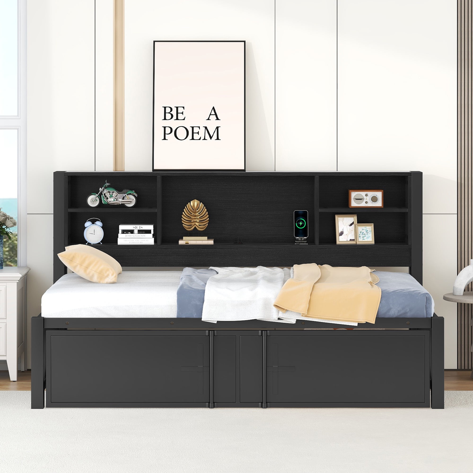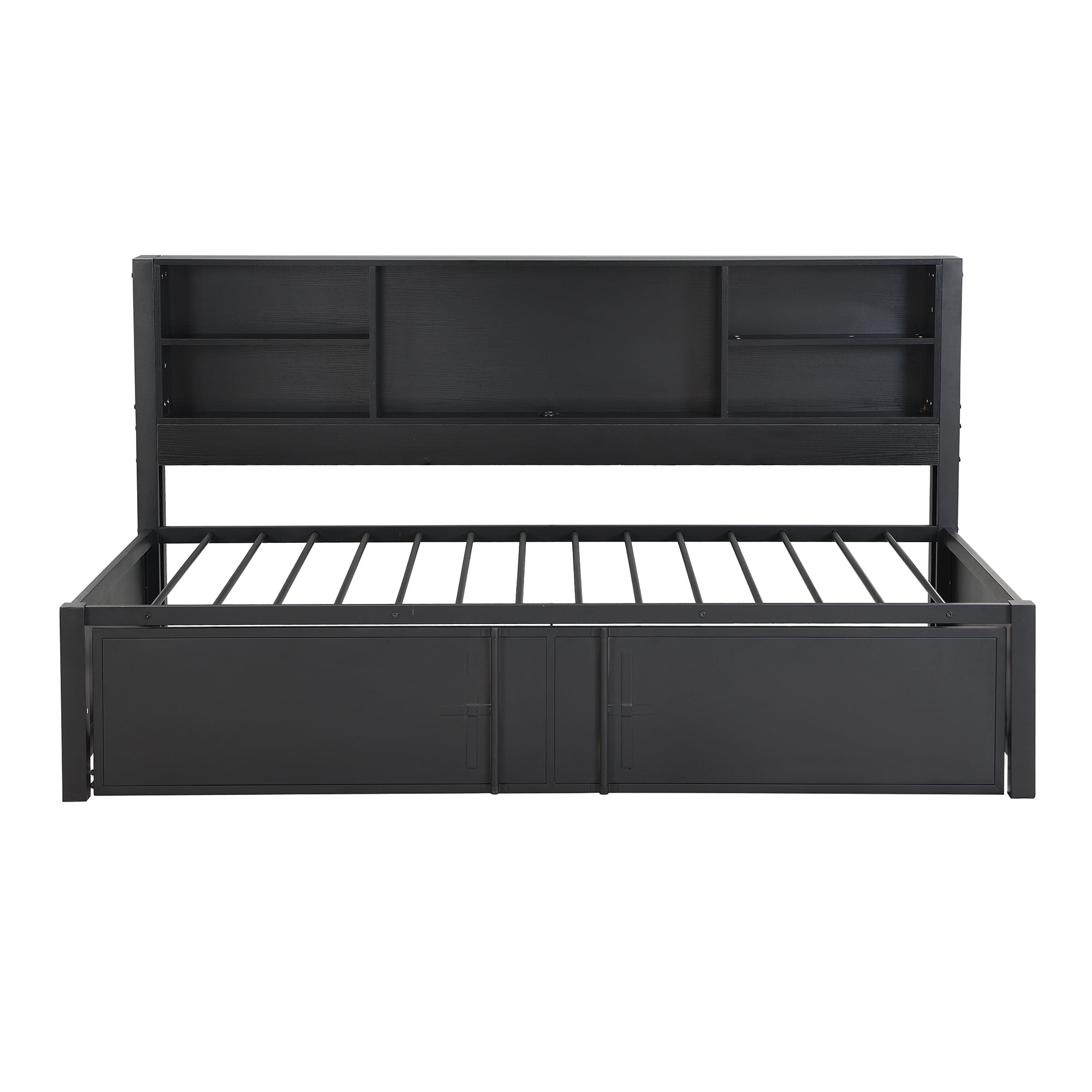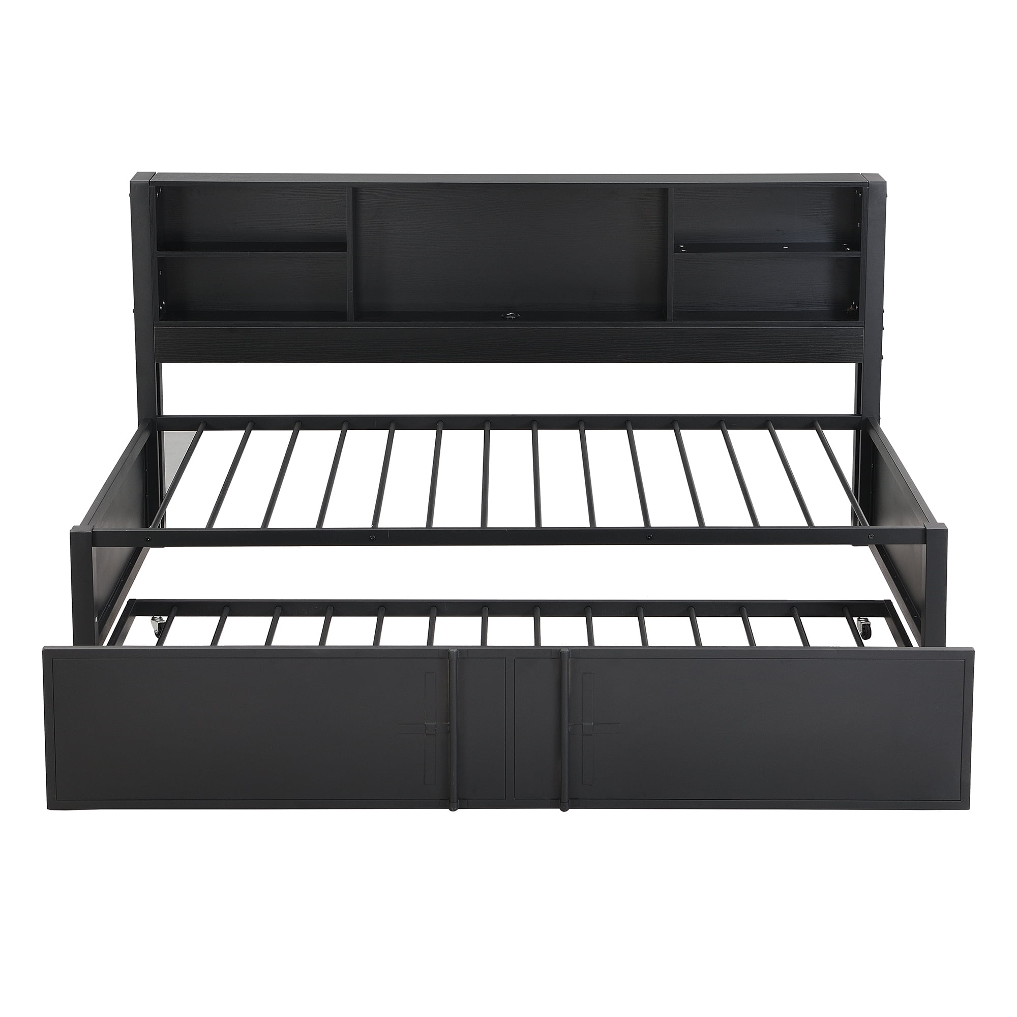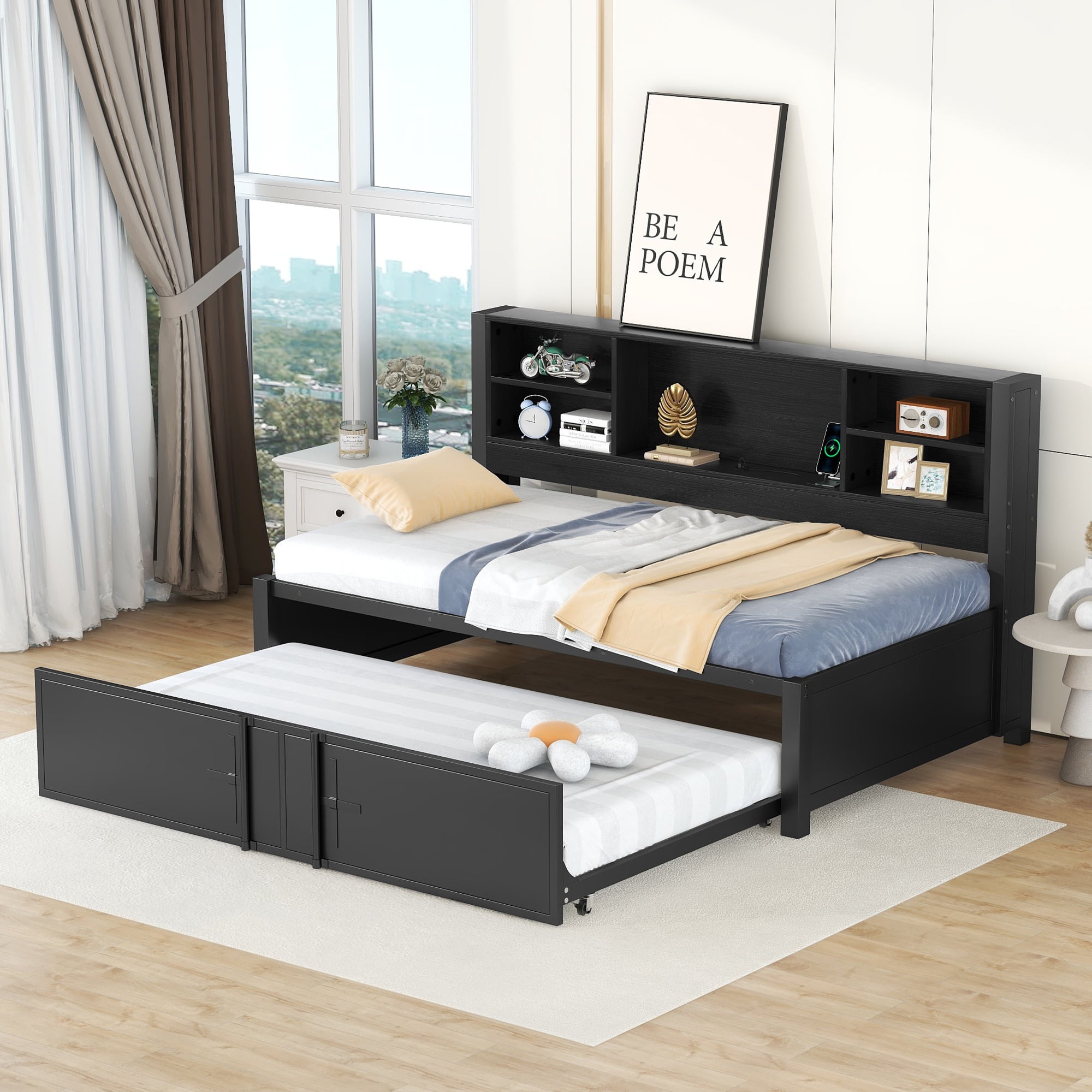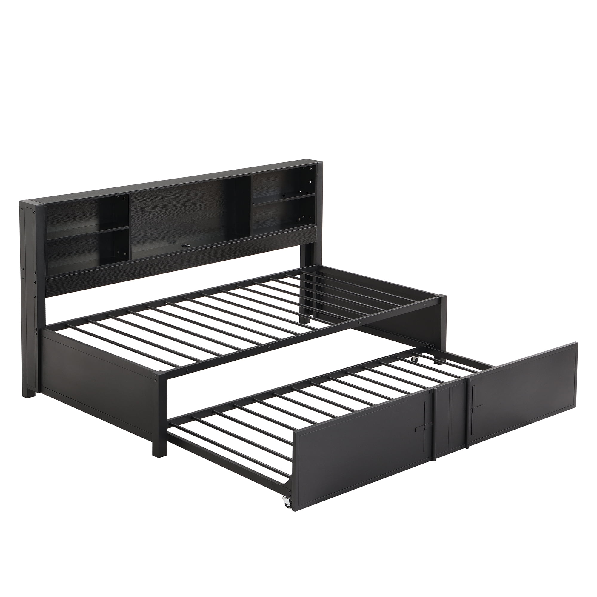 Euroco Expandable Twin Daybed with Trundle and USB Ports, Black