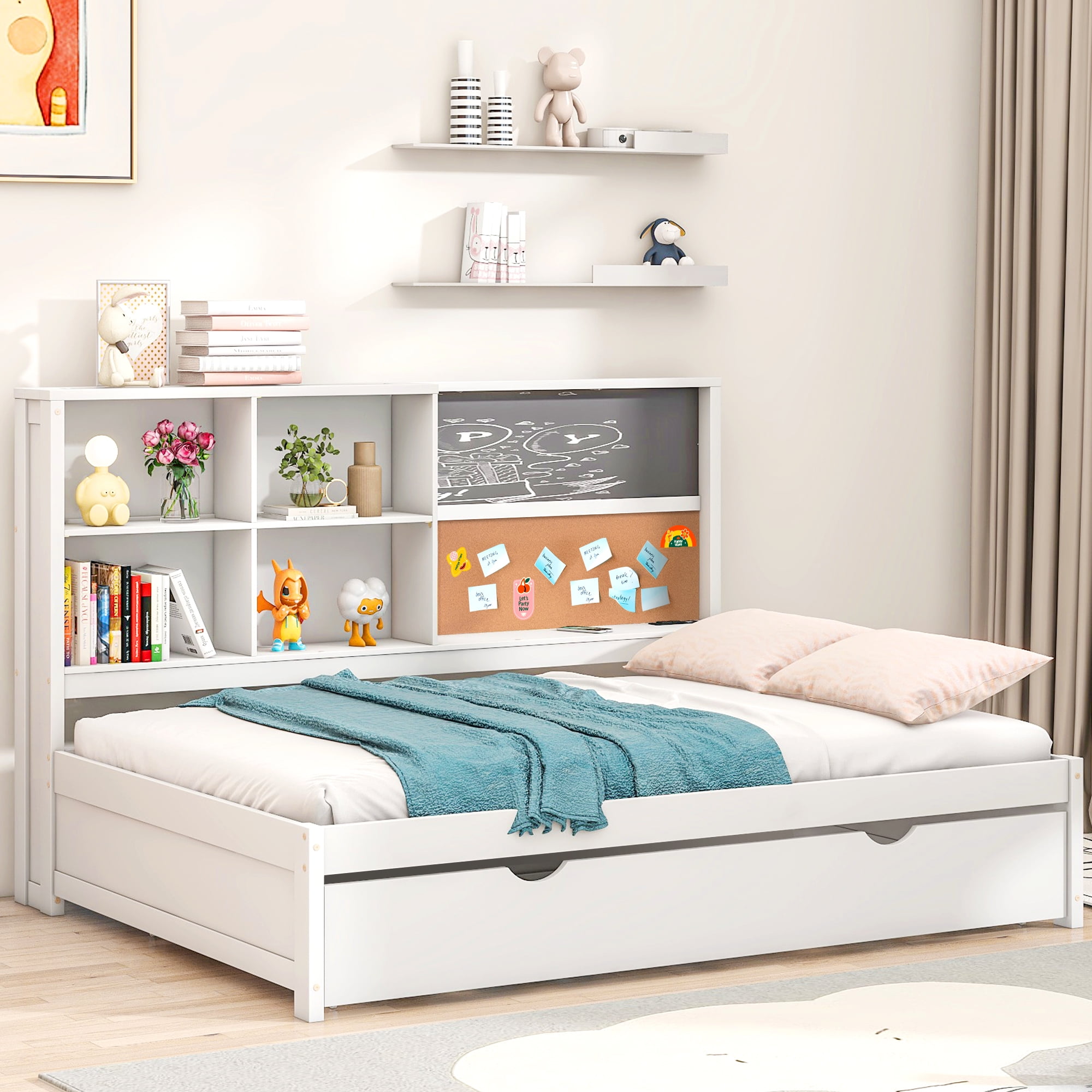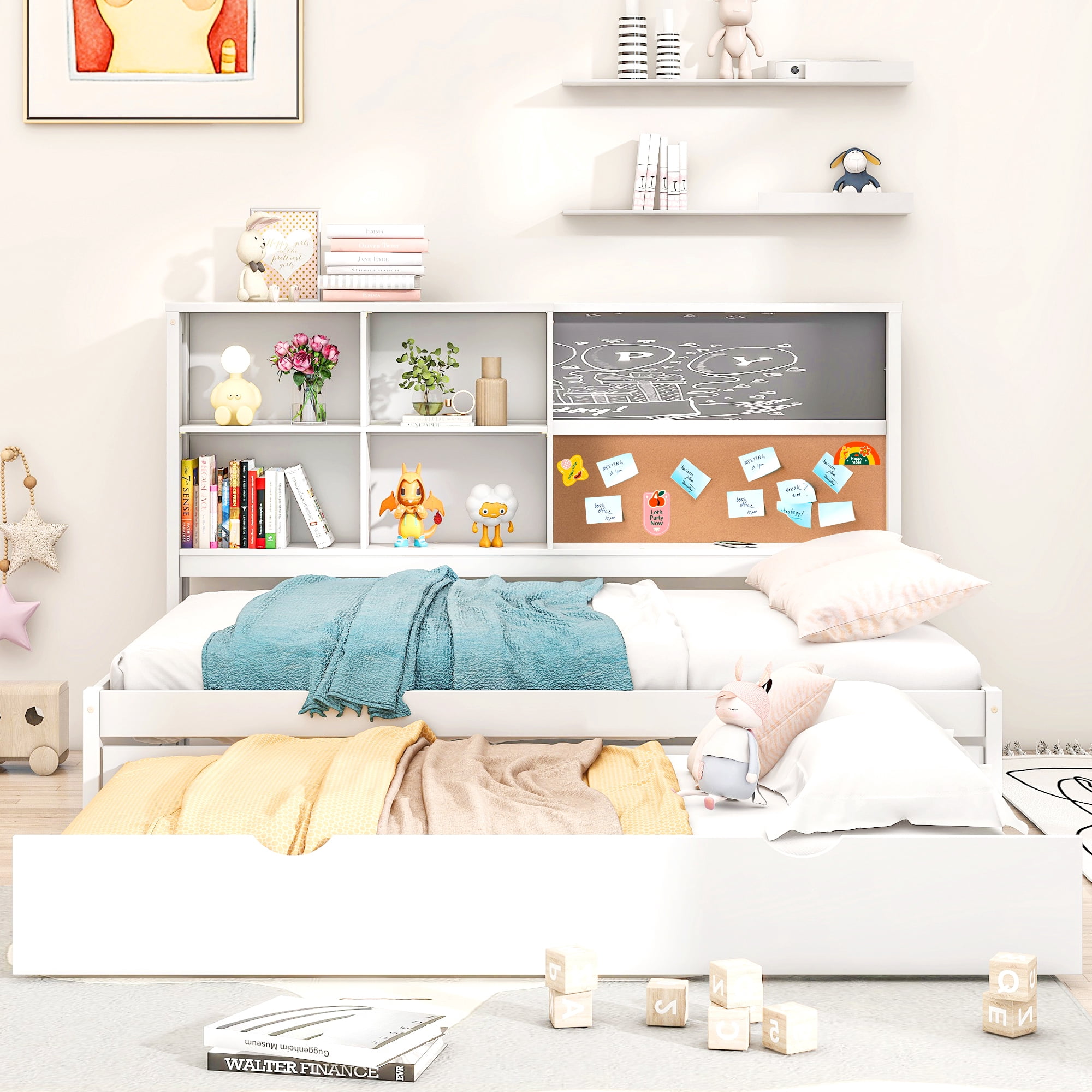 Euroco Full Size Daybed, Captain Bed with Blackboard,Cork Board,USB Charging for Kids Teens Bedroom,White