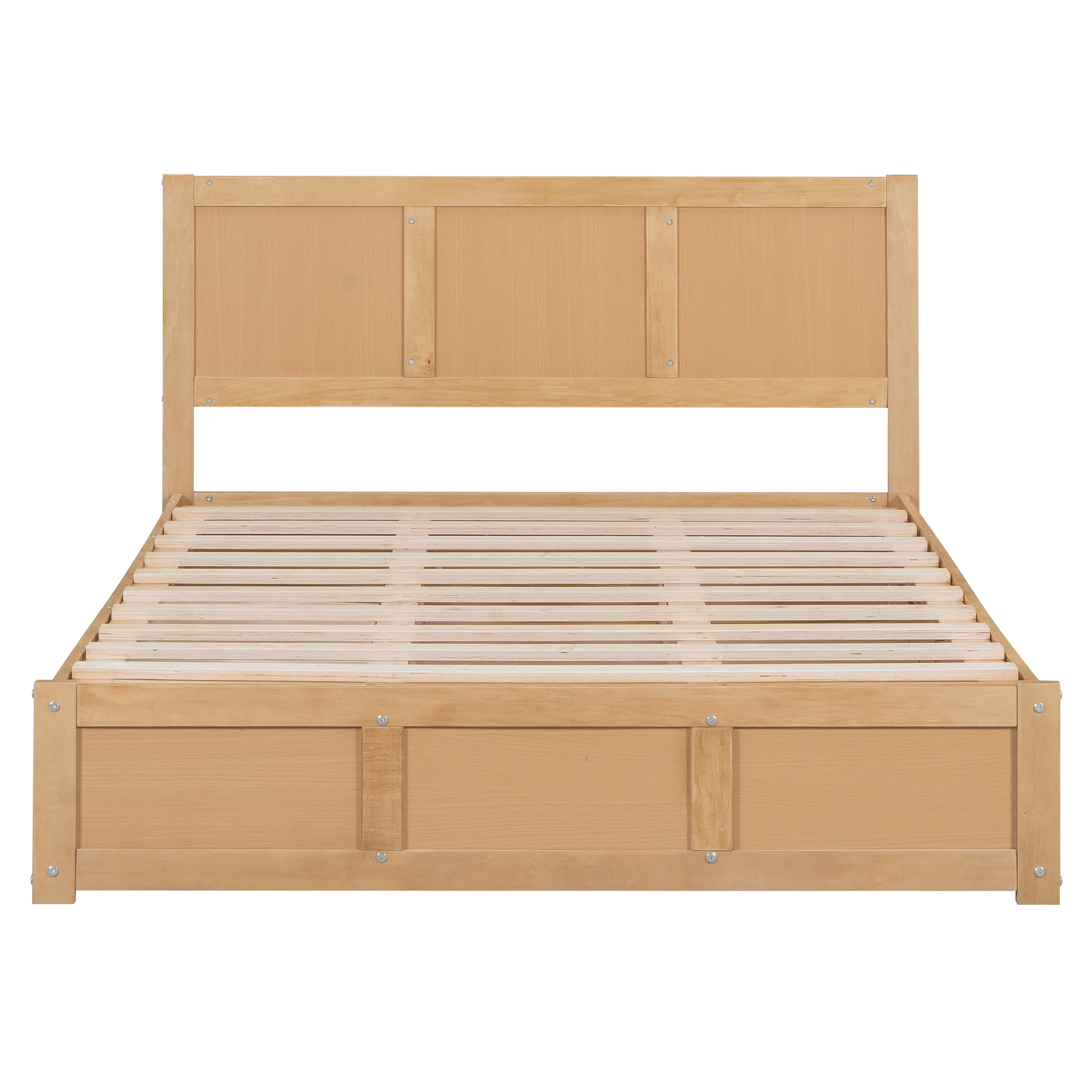 Euroco Full Size Lift up Storage Bed, Wood Platform Bed Frame with 2 Drawers, Hydraulic Storage System, Easy Assembly, Natural