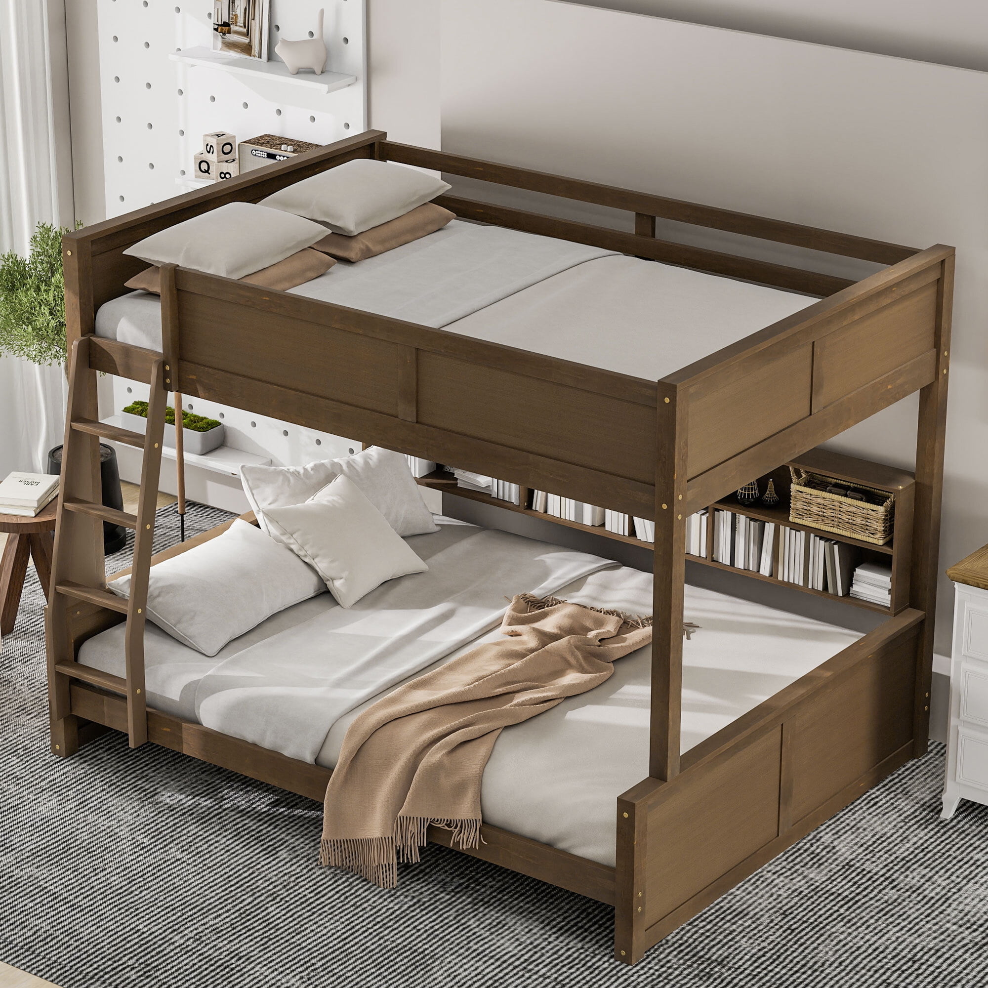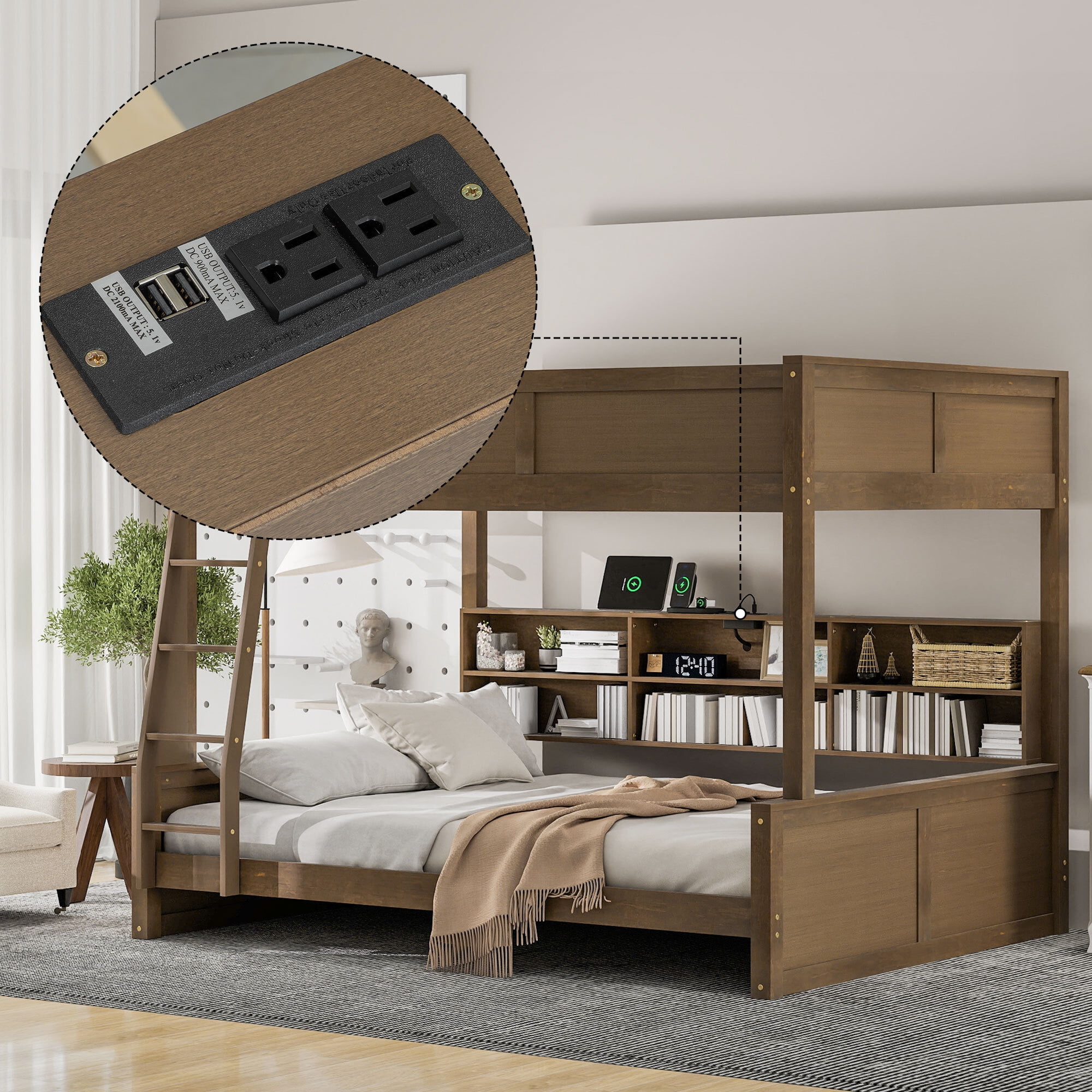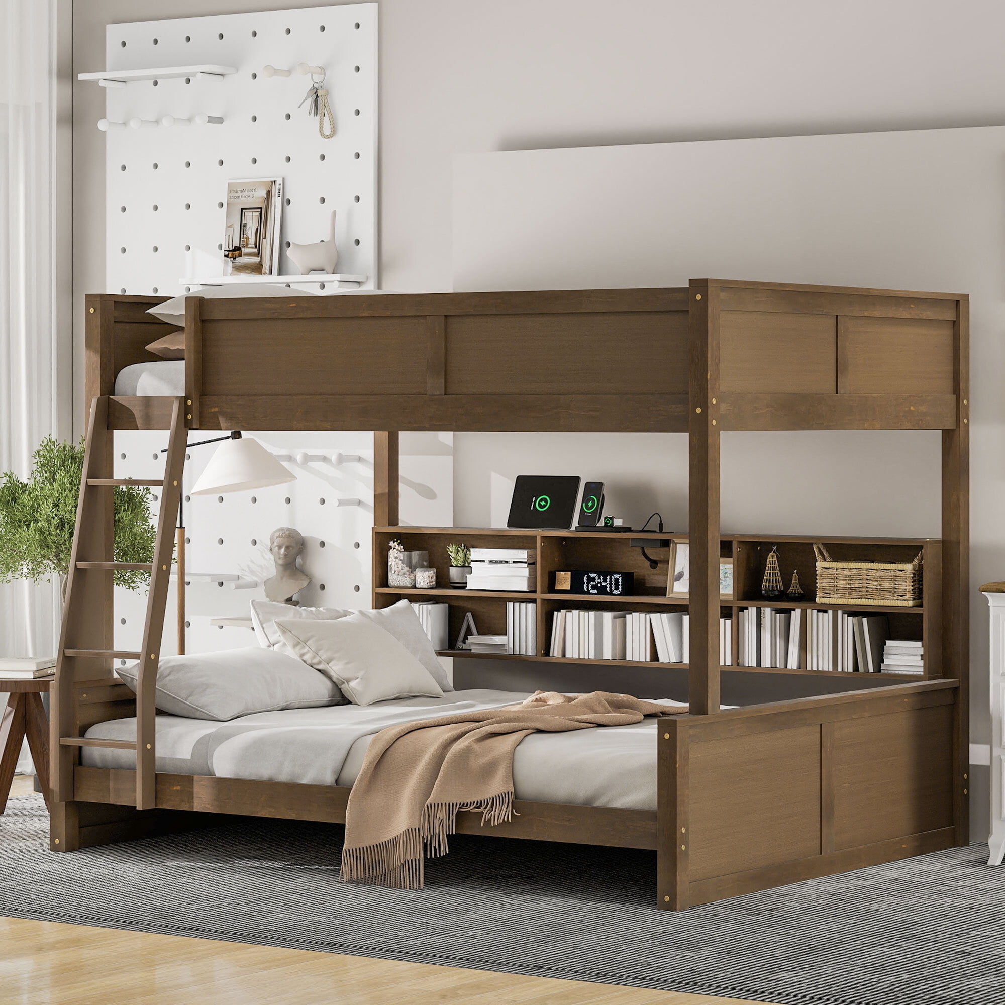 The Full XL Over Queen Bunk Bed with Storage Cabinets and USB Ports combines space-saving functionality with modern convenience. Its queen-size lower bunk and extra-long full (XL) upper bunk comfortably accommodate teens or adults, making it ideal for shared rooms or small spaces. The built-in storage cabinets keep essentials organized, while integrated USB ports on both bunks allow effortless device charging. Crafted from durable solid wood, this bunk bed prioritizes safety with sturdy guardrails and a stable ladder. The sleek design suits any décor, from kids’ bedrooms to vacation homes. Easy to assemble and built to last, it’s a practical, stylish solution for maximizing space without sacrificing comfort or convenience.