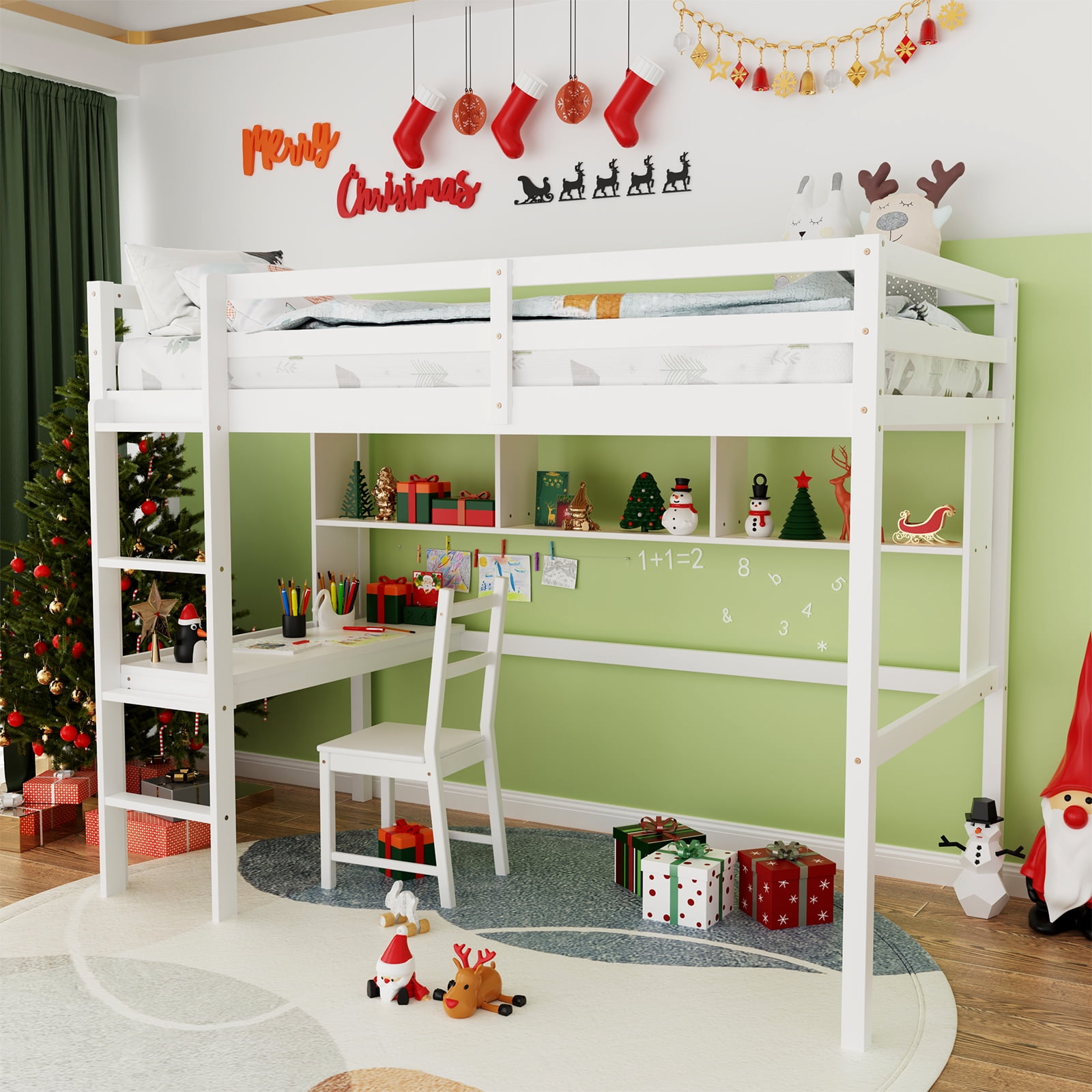 Euroco Full XL over Queen Bunk Bed with Functional Cabinet and USB Charging Station for Kids Teens, Wood