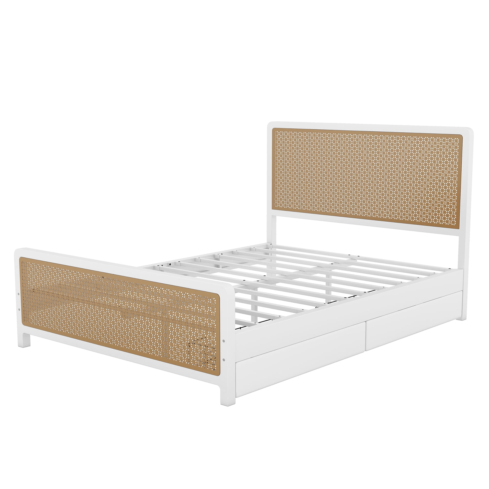 Euroco Metal Queen Size Platfrom Bed with 2 Drawers, White