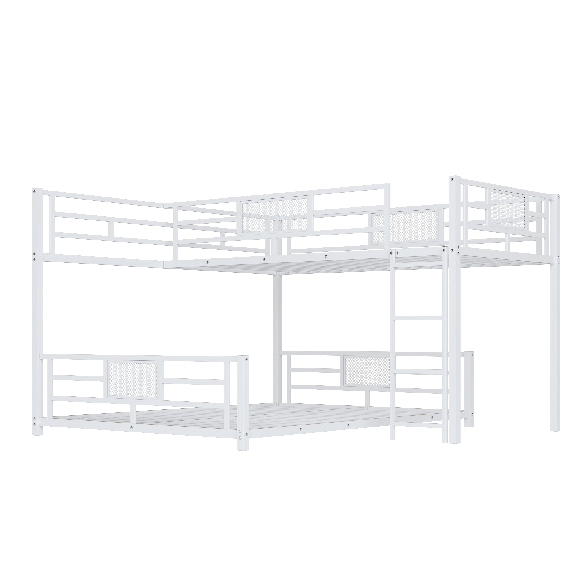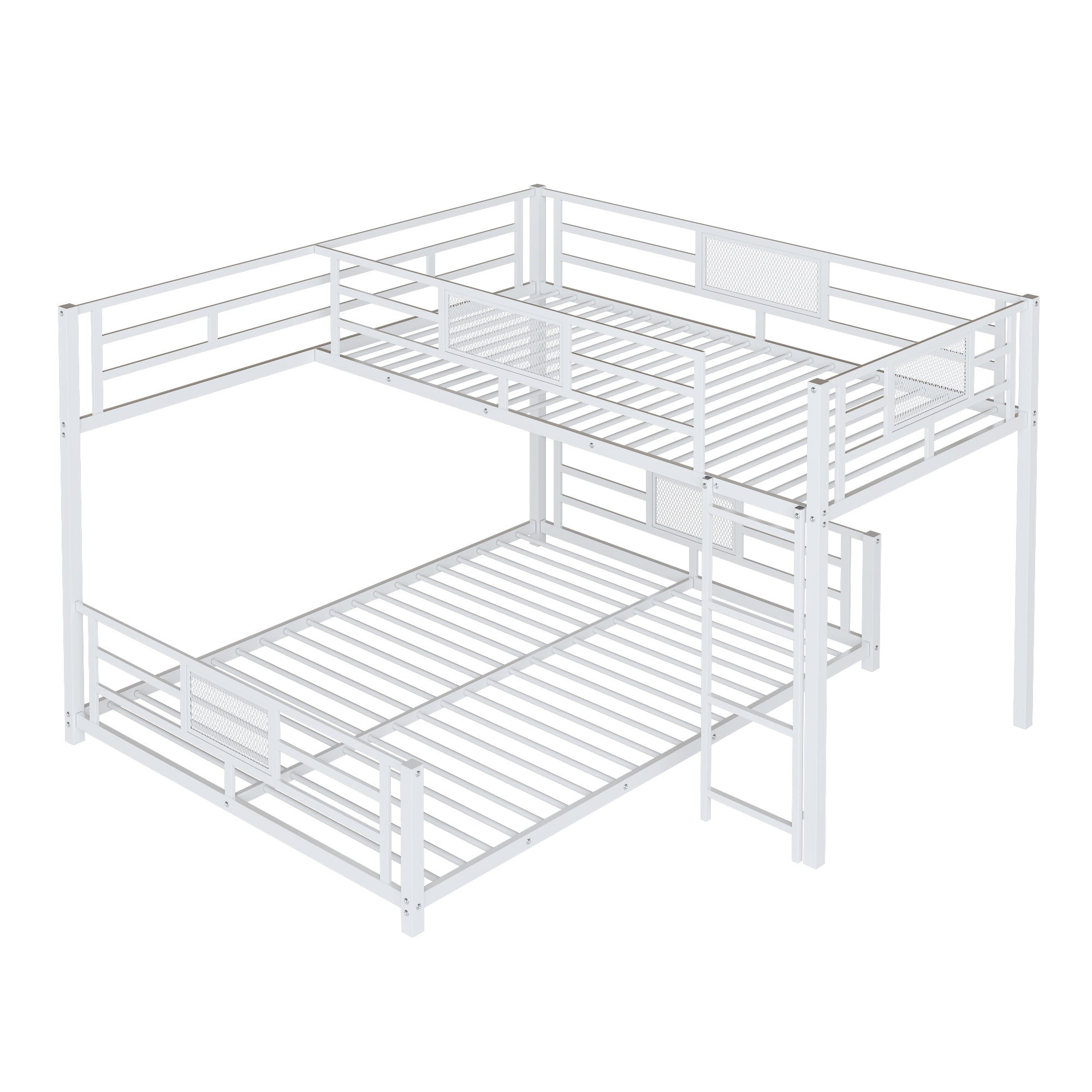 Designed with space-saving in mind, this Euroco twin over full bunk bed provides two sleeping areas without disturbing each other. L shaped bunk bed design will optimize vertical space utilization, offer ample use space, and enhance the functionality of any room, combining practicality and style. Metal bunk bed frame is suitable for multiple-child families, dorms, or guest rooms. Solid bed will stand the test of time and serve your family for many years.