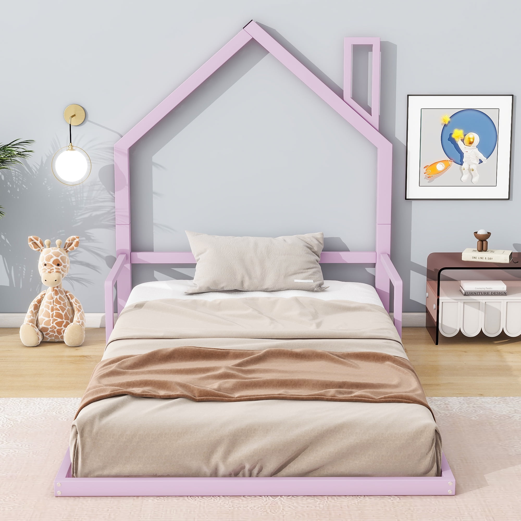 Features: [Sturdy Construction] Constructed of solid metal frame, this bed features a sturdy high-quality solid wood construction for durability and high load capacity, ensuring longevity. [Playful Design] A house-shaped headboard, complete with a chimney, adds interest to your room. [Simple and Modern] This bed is designed with a clean silhouette and a hue of elegance. [No Box Spring Required] The floor bed design doesn’t need the spring box. [Easy Assembly] Each order comes with a clear and detailed assembly instruction guide and all necessary tools are provided to get your bed assembled in no time.